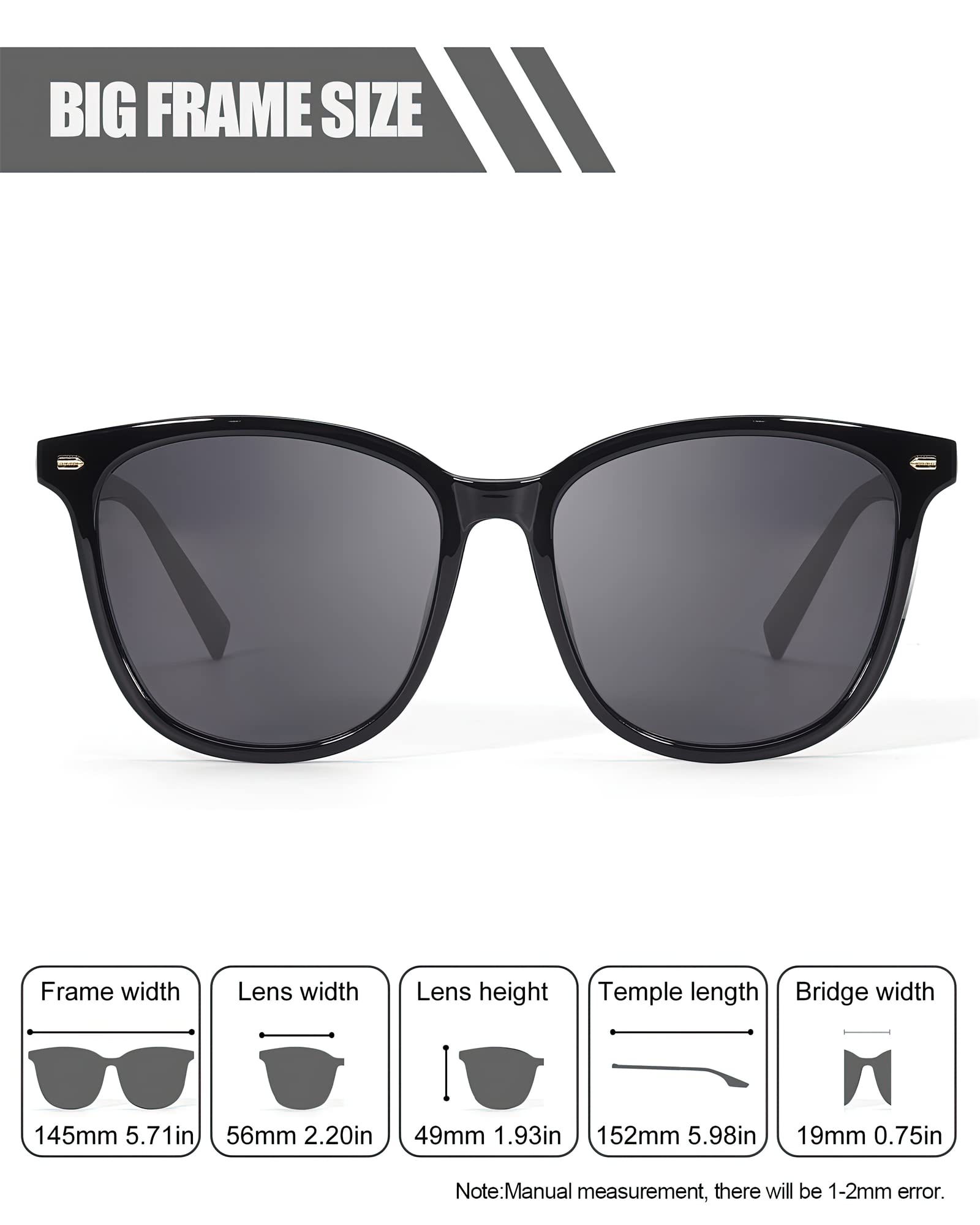 - STYLISH DESIGN COMFORTABLE WEAR - It is designed with lightweight materials and ergonomic features that can perfectly fit your facial contour and ears without causing any discomfort or pressure. Moreover, the stylish and exquisite appearance of these sunglasses can add radiance to your fashion taste. Whether you wear it for outdoor activities or daily use, this pair of sunglasses will be your ideal choice.