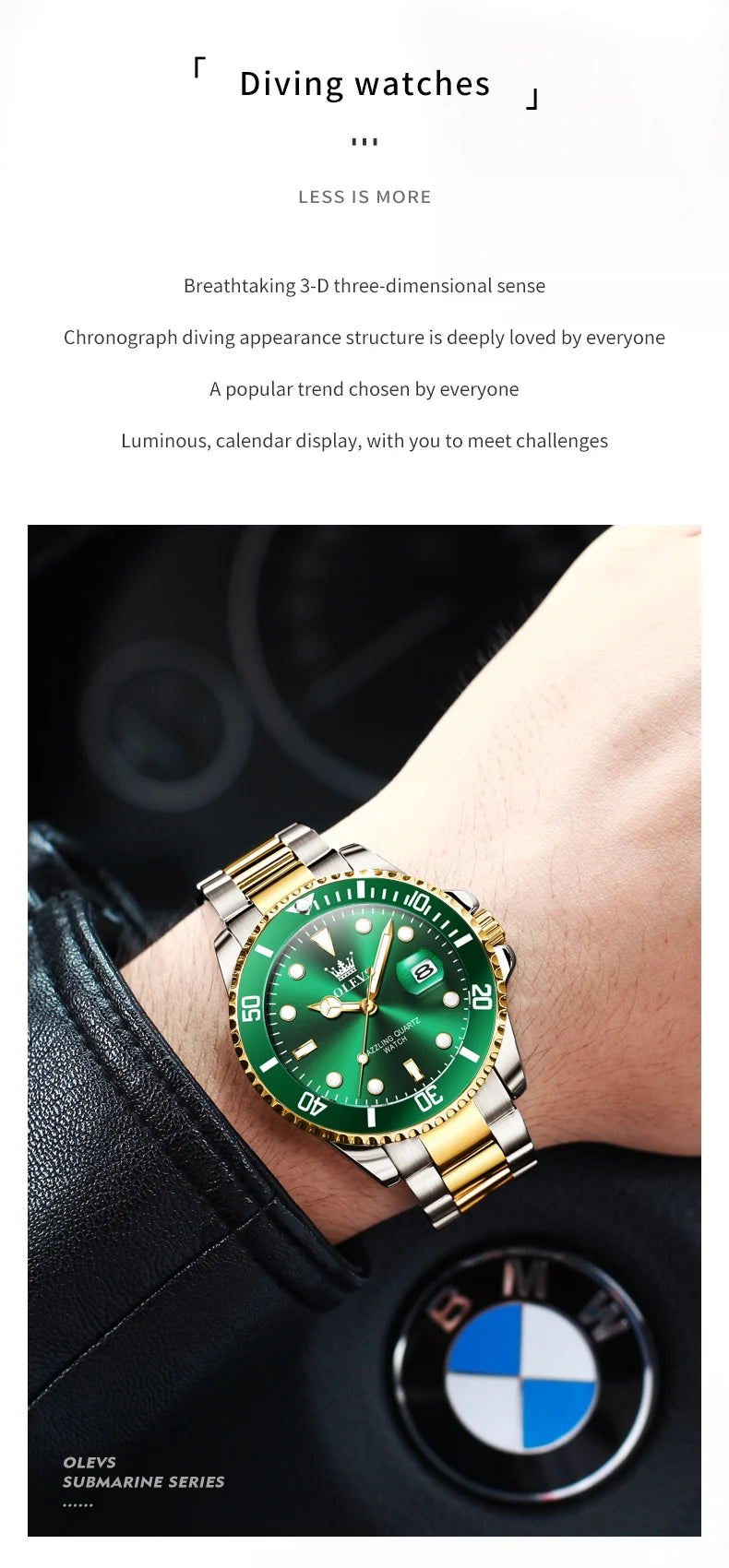 OLEVS 5885 Man Watch Original Brand Waterproof Quartz Watch Stainless Steel Strap Automatic Date Mens Gifts Watches For Man