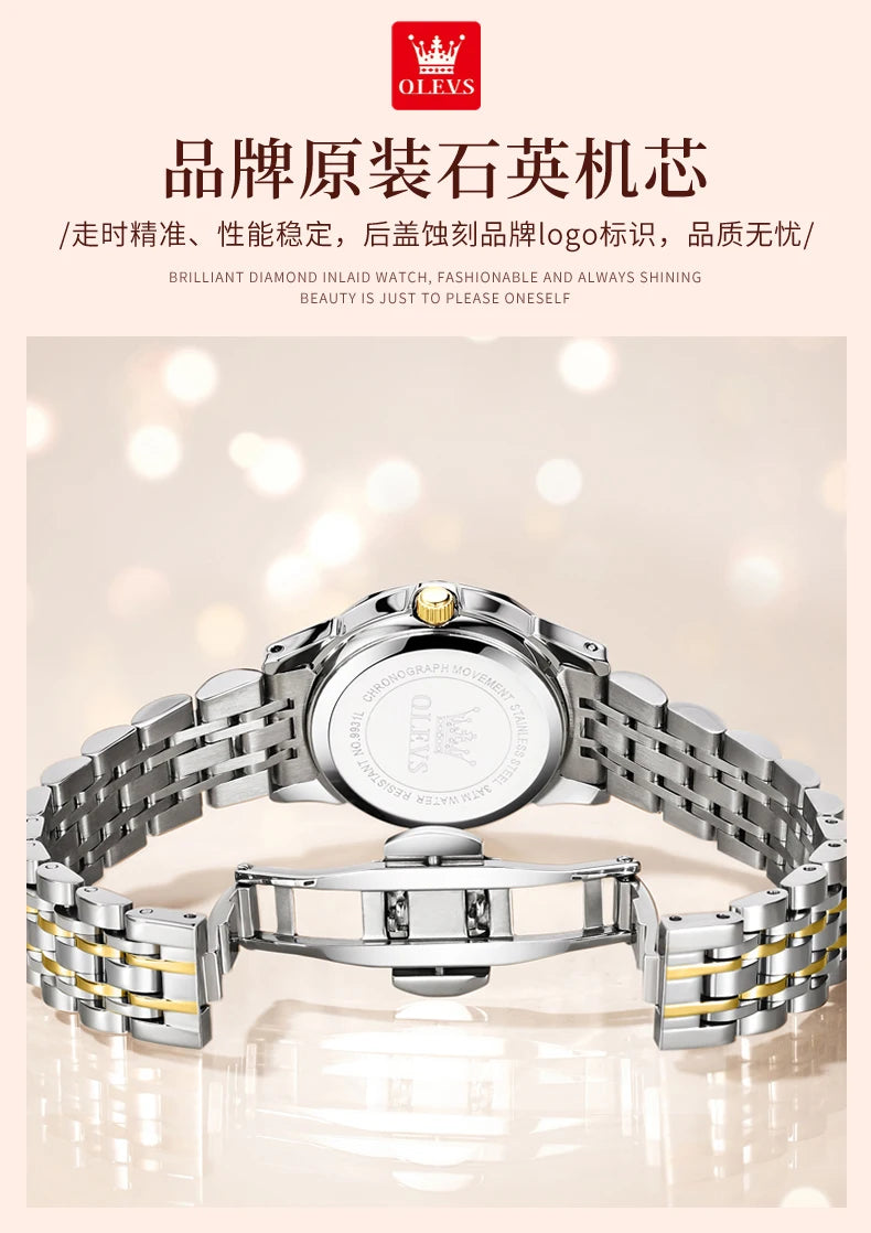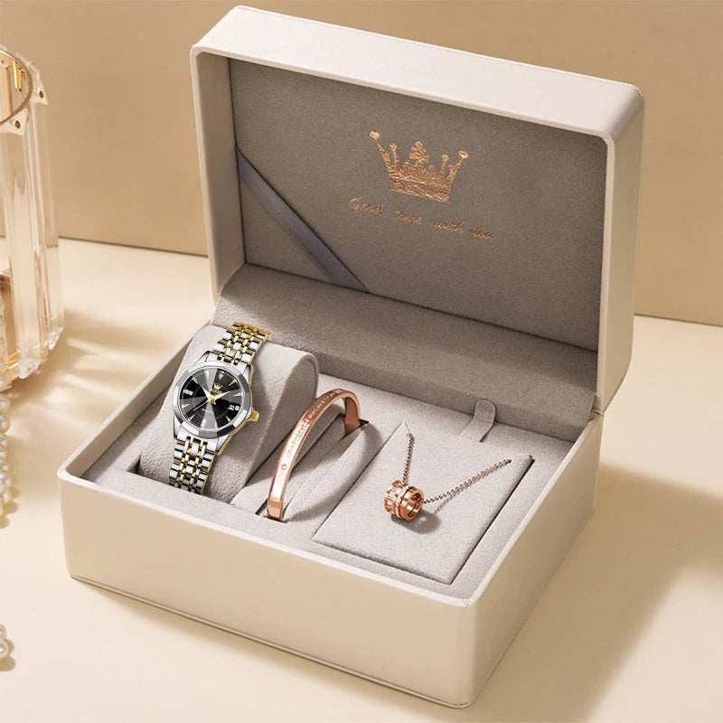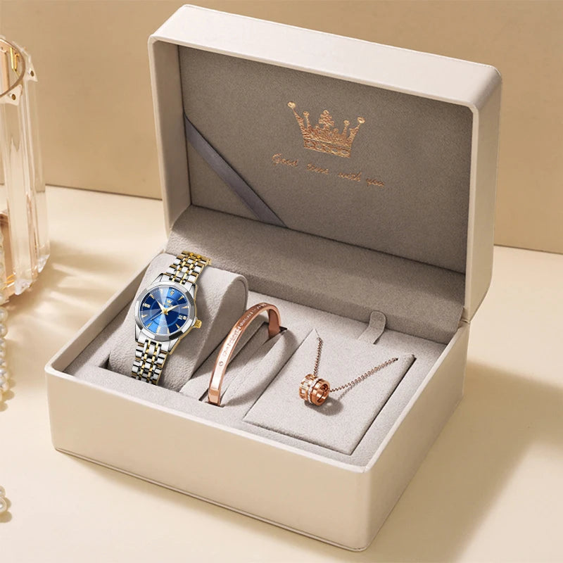 OLEVS Original Brand Elegant Women's Watches Waterproof Luminous Quartz Watch for Lady Necklace Bracelet Gift Box Set Calendar
