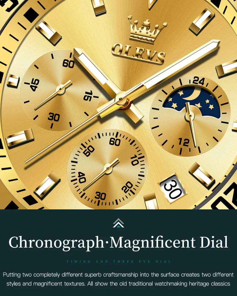 Feature: Luminous,Chronograph,Complete Calendar,Moon Phase,Water Resistant
