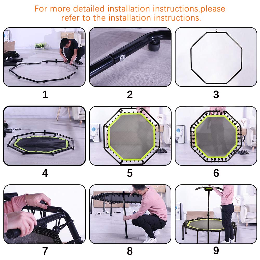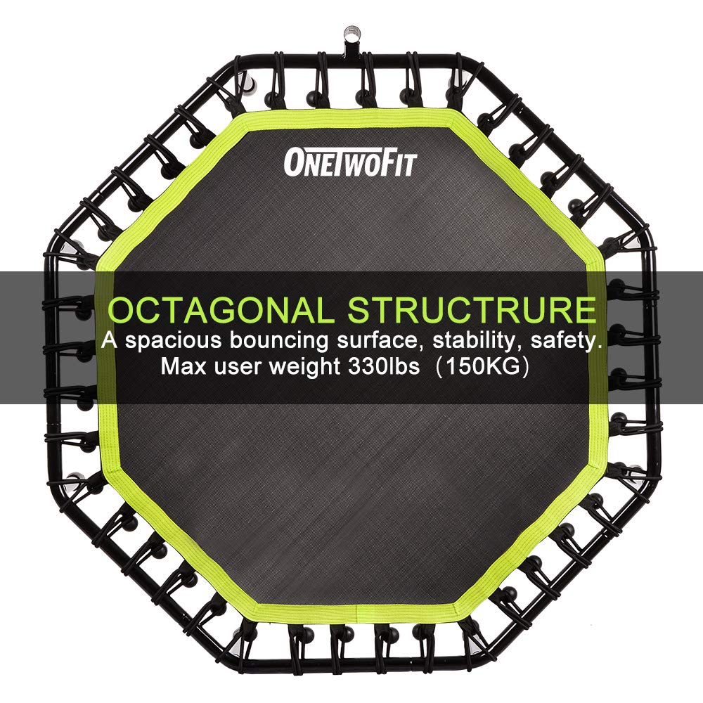 ONETWOFIT 51" Silent Trampoline with Adjustable Handle Bar, Fitness Trampoline Bungee Rebounder Jumping Cardio Trainer Workout for Adults…