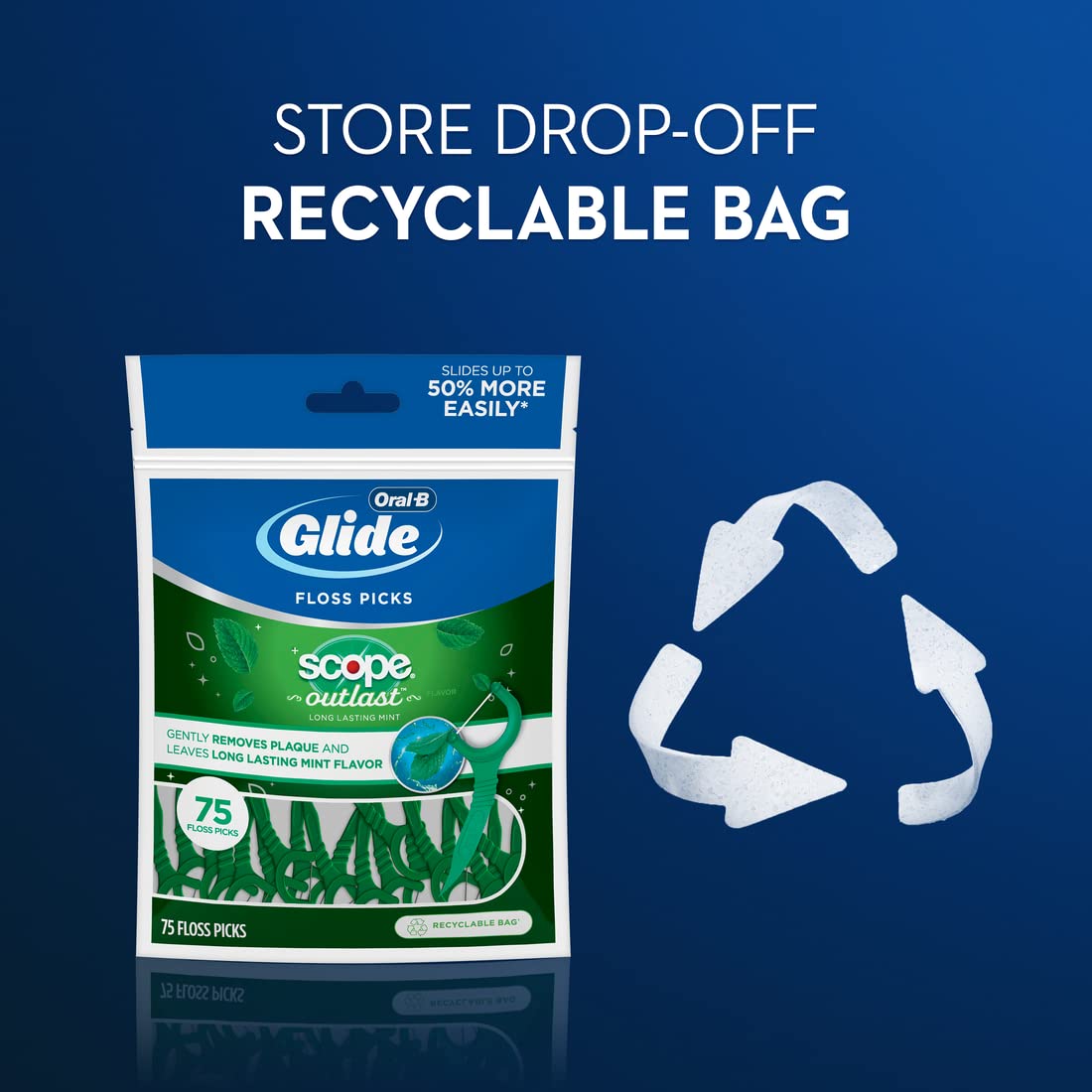 Details: Oral-B Glide Floss Picks + Scope Outlast Flavor combines the freshness of Scope flavor and the silky-smooth texture of Glide floss with the ease of a floss pick. Oral-B Glide Floss Picks slide up to 50% more easily in tight spaces* and effectively removes plaque and food particles between teeth and just below the gumline. Oral-B is the #1 Dentist Recommended Floss Brand.