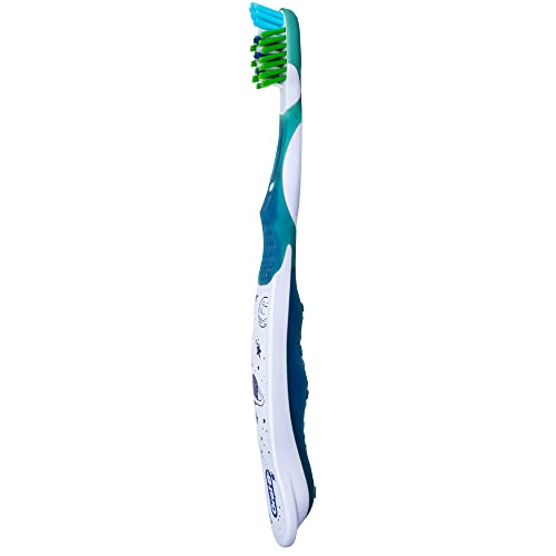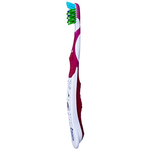 Details: The Oral-B Kids Galaxy 6+ toothbrush has soft, perfectly angled CrossAction bristles that clean between the gaps in kids' changing teeth (like teeth with braces) and remove plaque in hard-to-reach areas. Textured tongue cleaner removes odor-causing particles. Smaller brush handle designed to fit easily in kids' hands. Oral-B is the #1 recommended toothbrush brand by dentists worldwide.