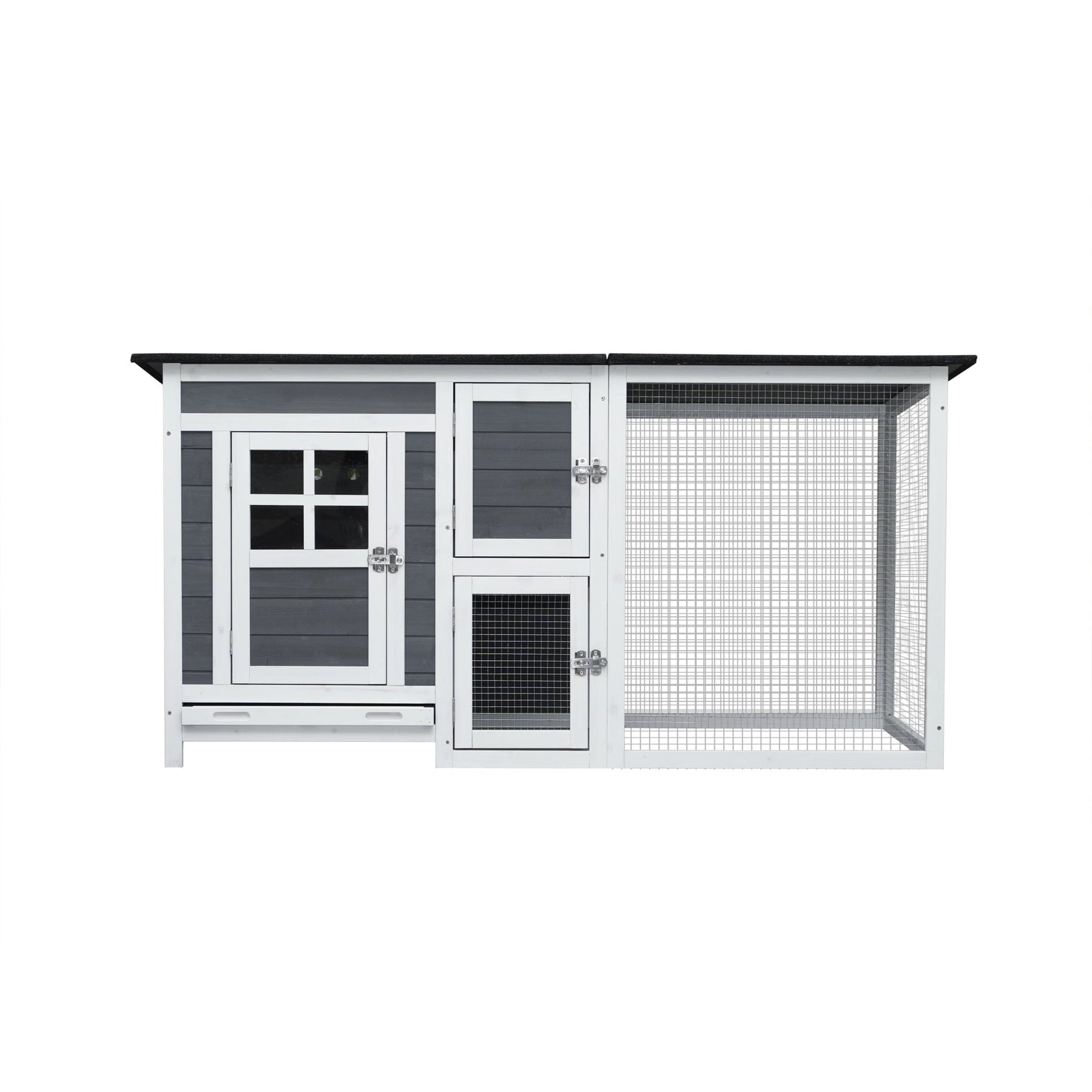 - Versatile animal home accommodates chickens, rabbits, ducks, and guinea pigs with 62.99”L x 29.44”W dimensions, offering a safe space for 3-4 pets. The fir wood frame and asphalt roof ensure year-round outdoor durability, giving owners peace of mind during storms or predator threats.
