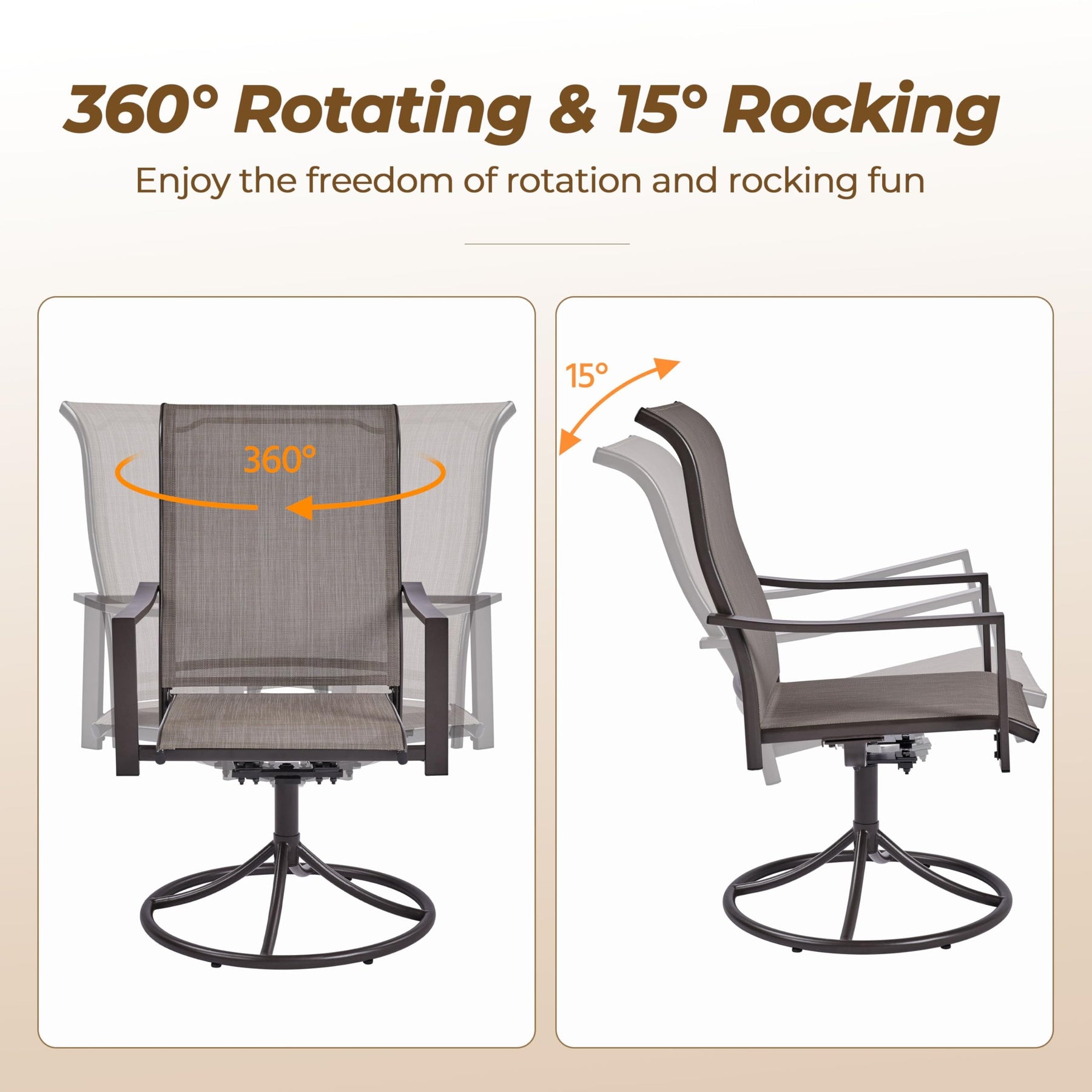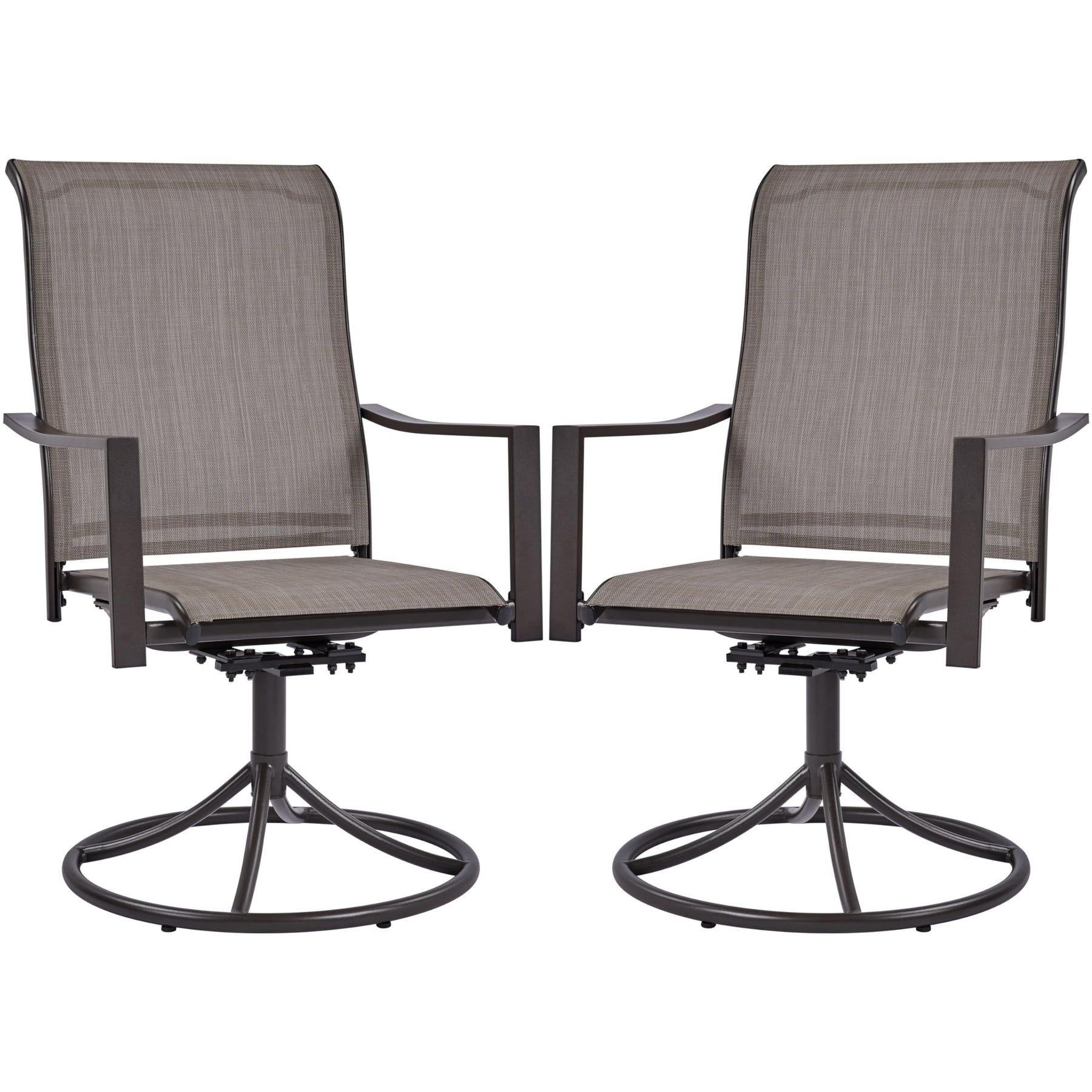 Outdoor Patio Swivel Chairs, Set of 2 Rocker Dining Chairs with Texteline Fabric and Metal Frame for Lawn Deck Backyard, Brown