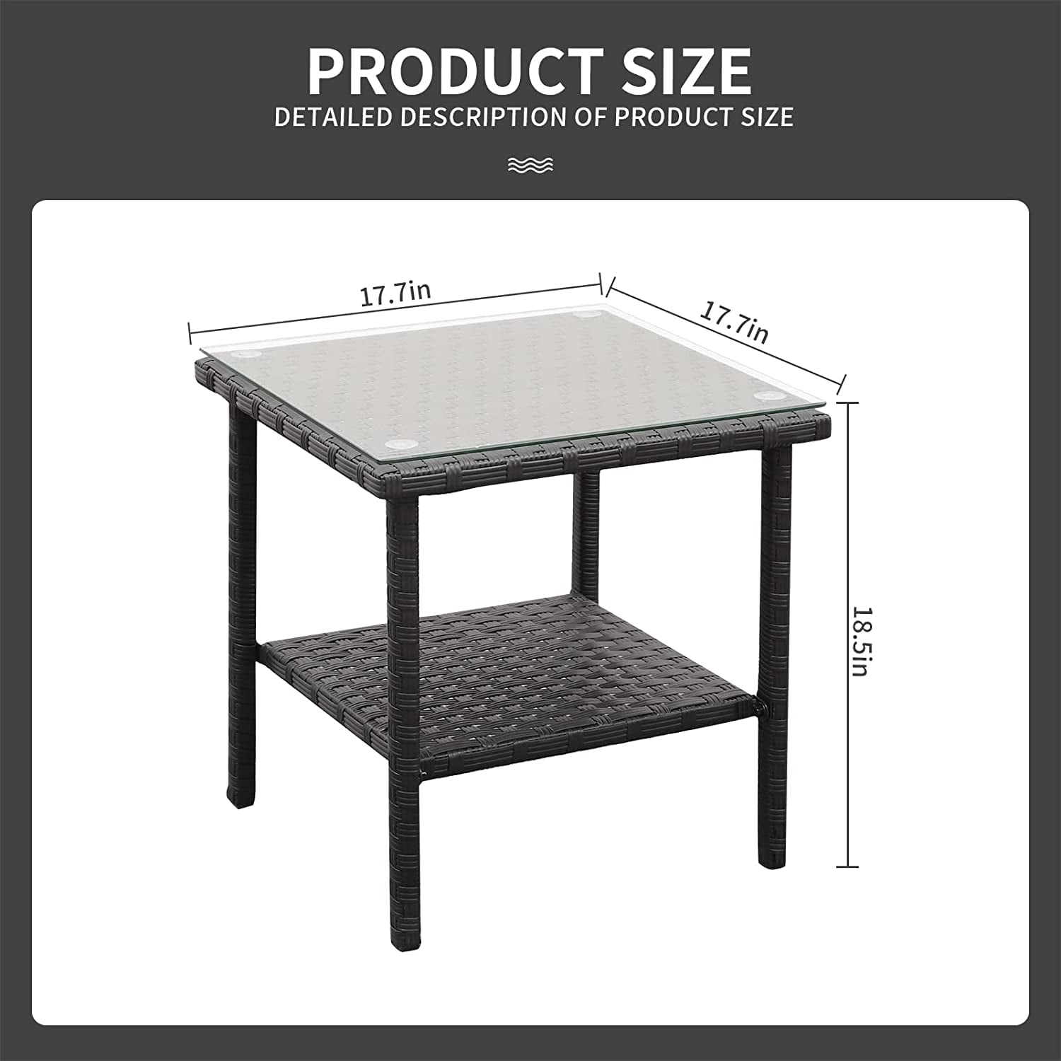 - This square side table is constructed from the strong powder-coated steel frame and PE wicker, which is sturdy and durable.