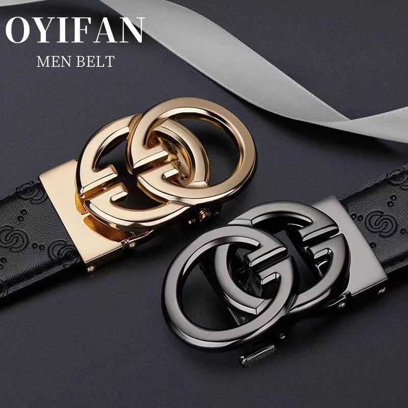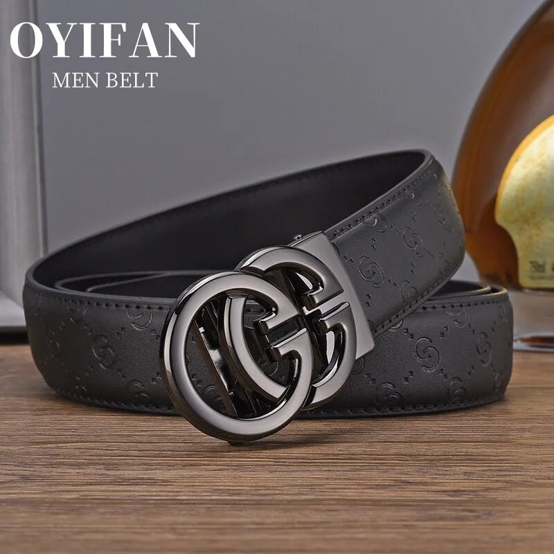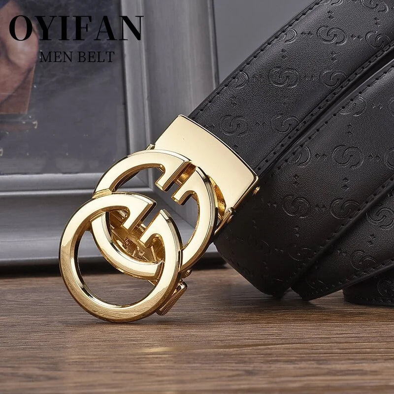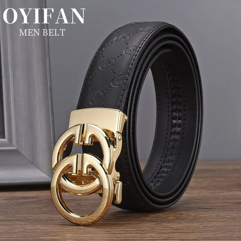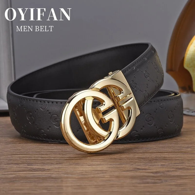 OYIFAN Fashionable Men's Designer Belt in High Quality Genuine Leather, Automatic Buckle Belt with Style Business Belt for Men