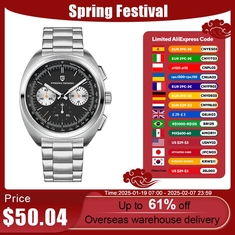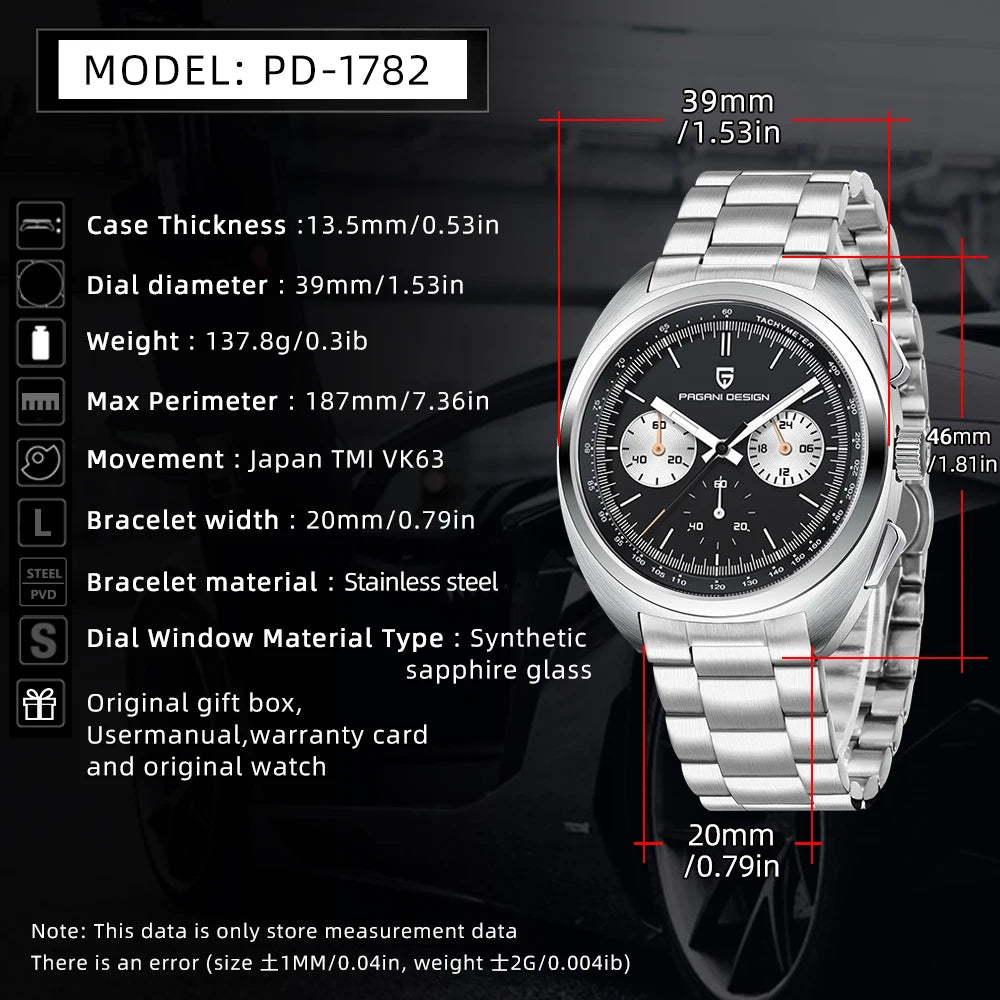 PAGANI DESIGN 2024 NEW Turtle Back Chronograph 1782 Watch for Man Luxury Men's Quartz Watch Luminous Waterproof Reloj Hombre