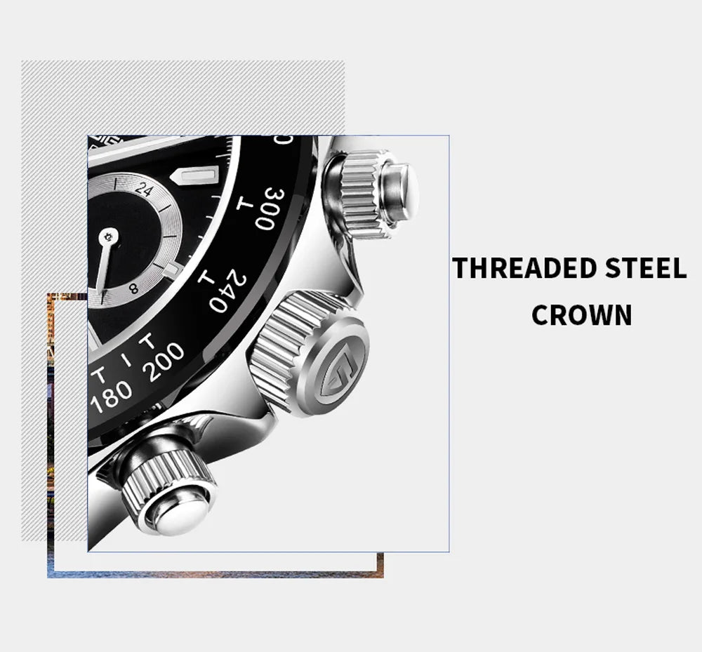 Feature: STOP WATCH,Shock Resistant,Auto Date,Chronograph,Complete Calendar,Water Resistant,luminous hands