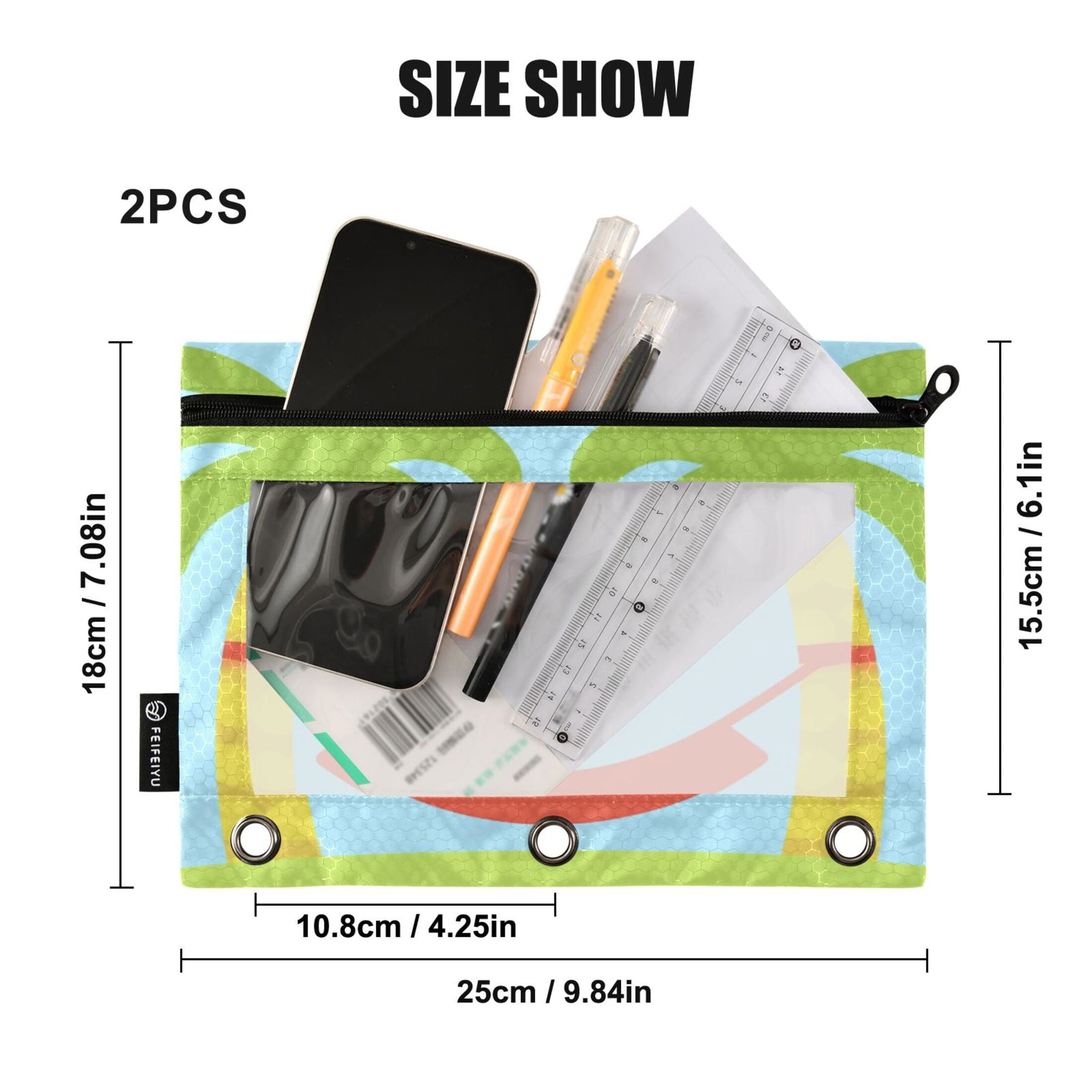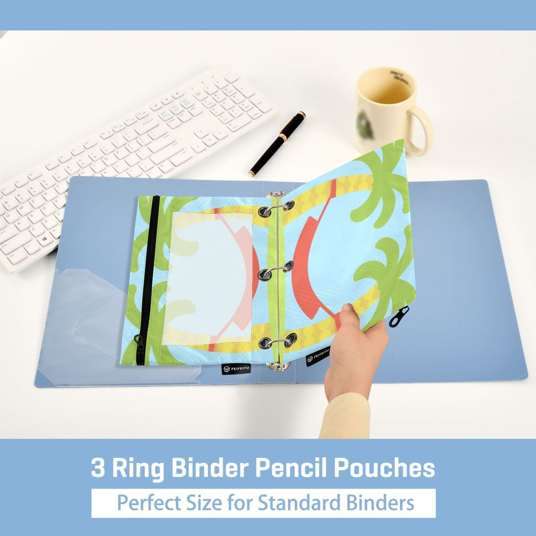 This 9.8x7.1in water-resistant polyester binder pouch combines durability and convenience for organizing stationery. Its transparent front panel offers easy access to pens, markers, or small items, while the 3-ring compatible design (hole spacing: 4.25in/10.8cm) fits standard binders for file storage. Crafted from 100% polyester with a full-print design, it protects contents from spills and keeps your desk tidy. Perfect for offices, schools, or home use—not machine washable.