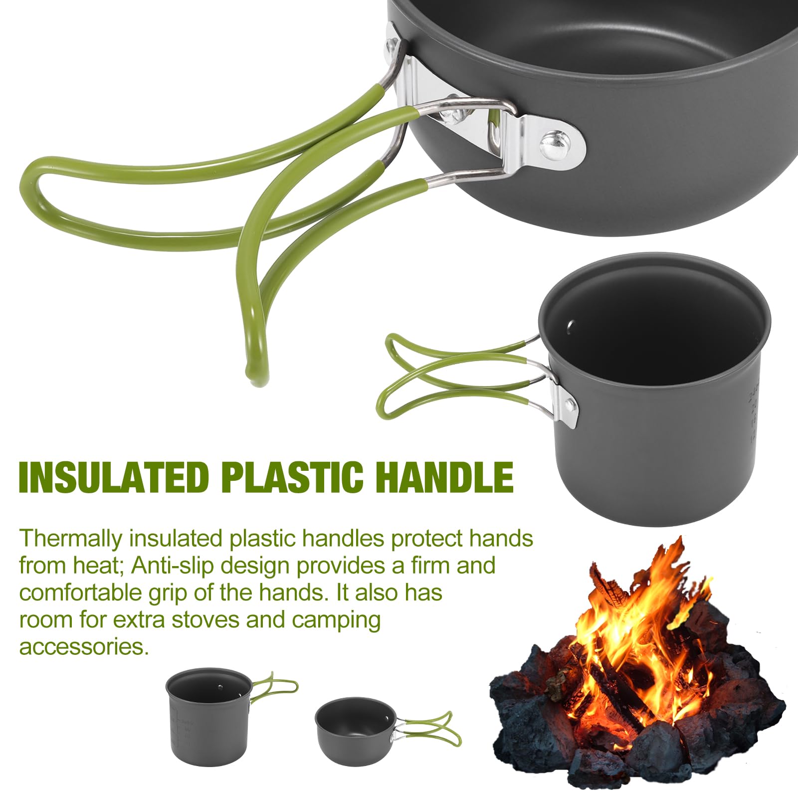 - 🌲【Wide Usage】: Outdoor lovers should never miss this! The camping pot set is designed for outdoor activities such as camping, trekking, hiking, picnic, barbecue, backpacking. Enjoy your time with family.If you have questions and problems, we will provide the perfect solution.
