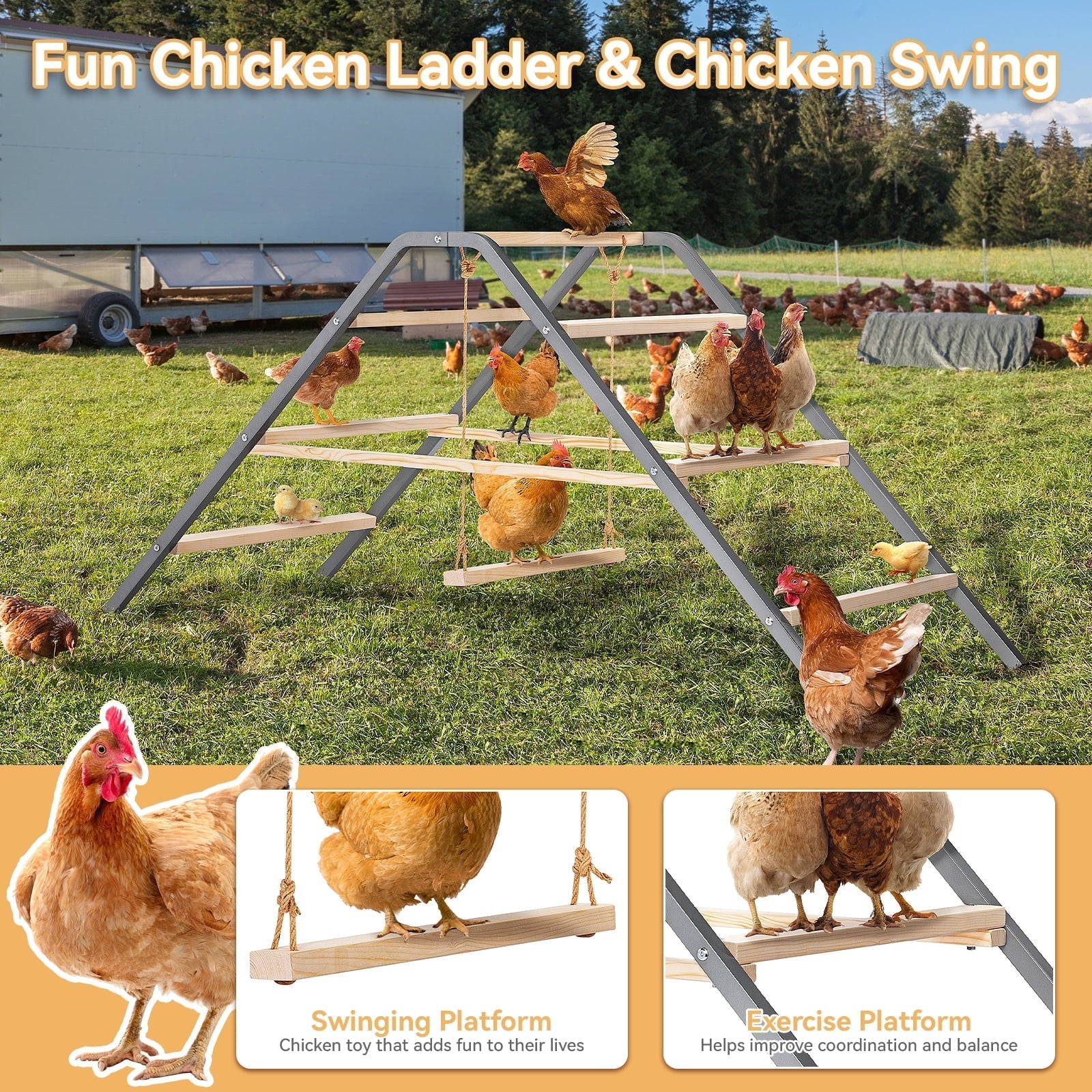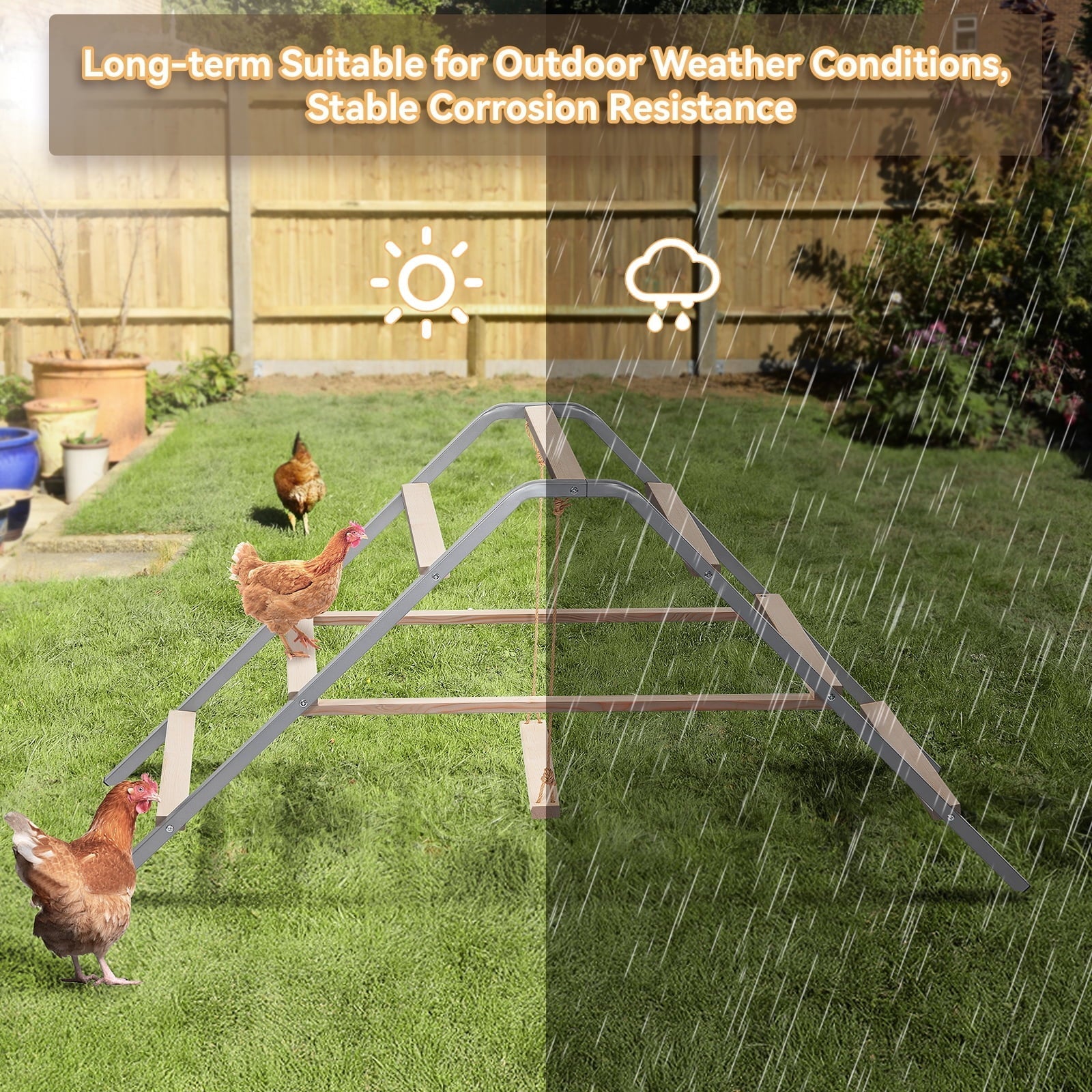 PETSFIT chicken roosting perch, made from solid wood and rustproof iron, offers durability and safety for your chickens, suitable for both indoor and outdoor use in all weather conditions. It encourages natural roosting behavior while strengthening your chickens' legs and feet, with a combined swing and ladder design for engaging playtime. Built to support multiple chickens, it provides stability and comfort, making it ideal for free-range chicken coops. Easy to assemble with clear instructions and simple to clean with a smooth surface, this versatile accessory fits perfectly into any backyard or farm setting. For any inquiries, feel free to contact us.