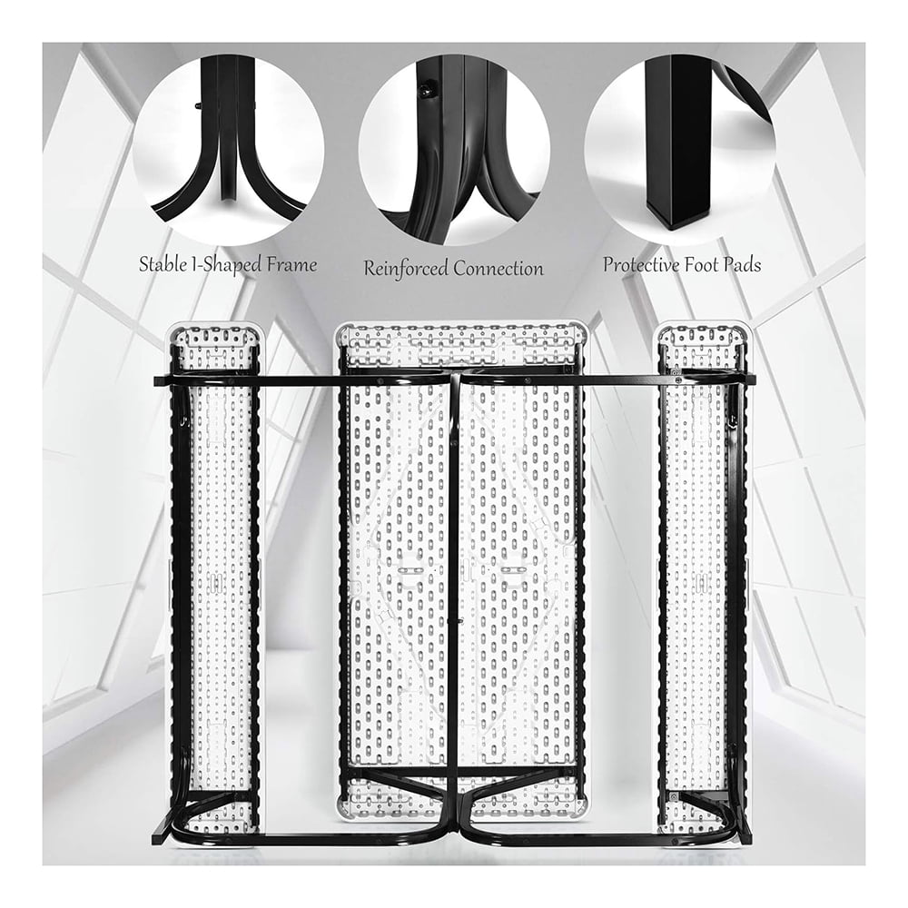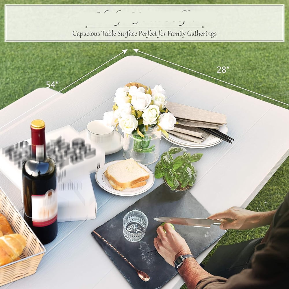 Our picnic table set is built to withstand various weather conditions, making it ideal for any outdoor setting. It is tough and built to last, ensuring it won't crack, chip, or peel. The table and bench surfaces are easy cleanup and saving you valuable time.The steel frame of our table bench set is coated with a smooth, powder-coated finish. The reinforced steel construction ensures sturdiness and stability, making it perfect for long-term use. Enjoy a reliable and sturdy picnic table set that will serve you for years to come.Designed with exquisite workmanship, the bench and table corners feature a round shape to avoid unexpected bumps and injuries. This thoughtful design ensures the security of your loved ones, especially children. Relax and enjoy your outdoor gatherings without worrying about their security.Our picnic table and bench set combines practicality and aesthetics seamlessly. With its simple design, smooth lines, and natural shape, it adds a touch of elegance to any outdoor space. The set is at a comfortable height for sitting and eating, providing an ideal picnic experience.