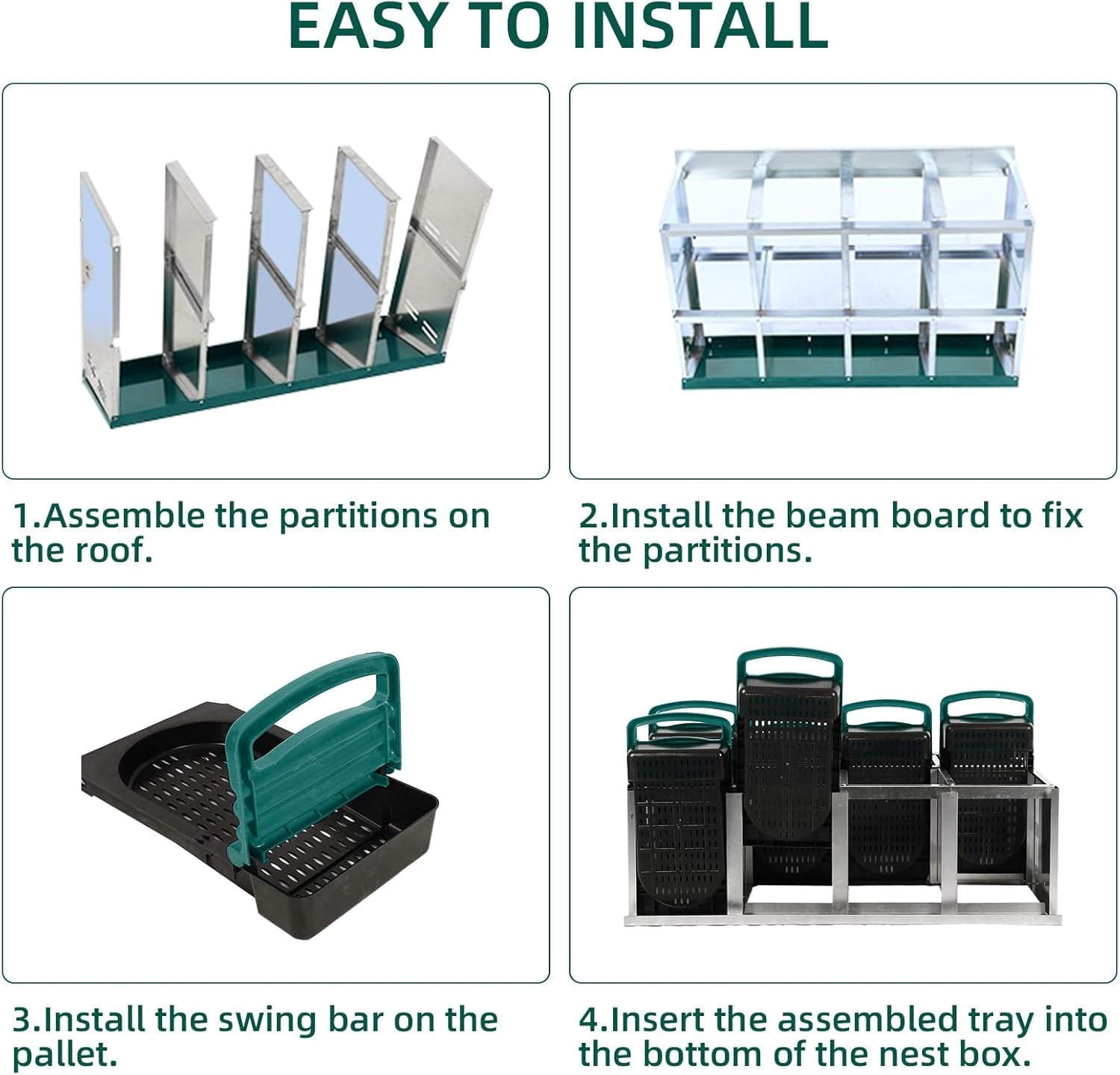 - Convenient Egg Collection Mechanism: The unique tilting design of this nesting box allows the eggs to roll automatically into the collection tray for quick and easy egg collection. Say goodbye to tedious manual egg picking, you can easily access fresh eggs while ensuring they are intact.