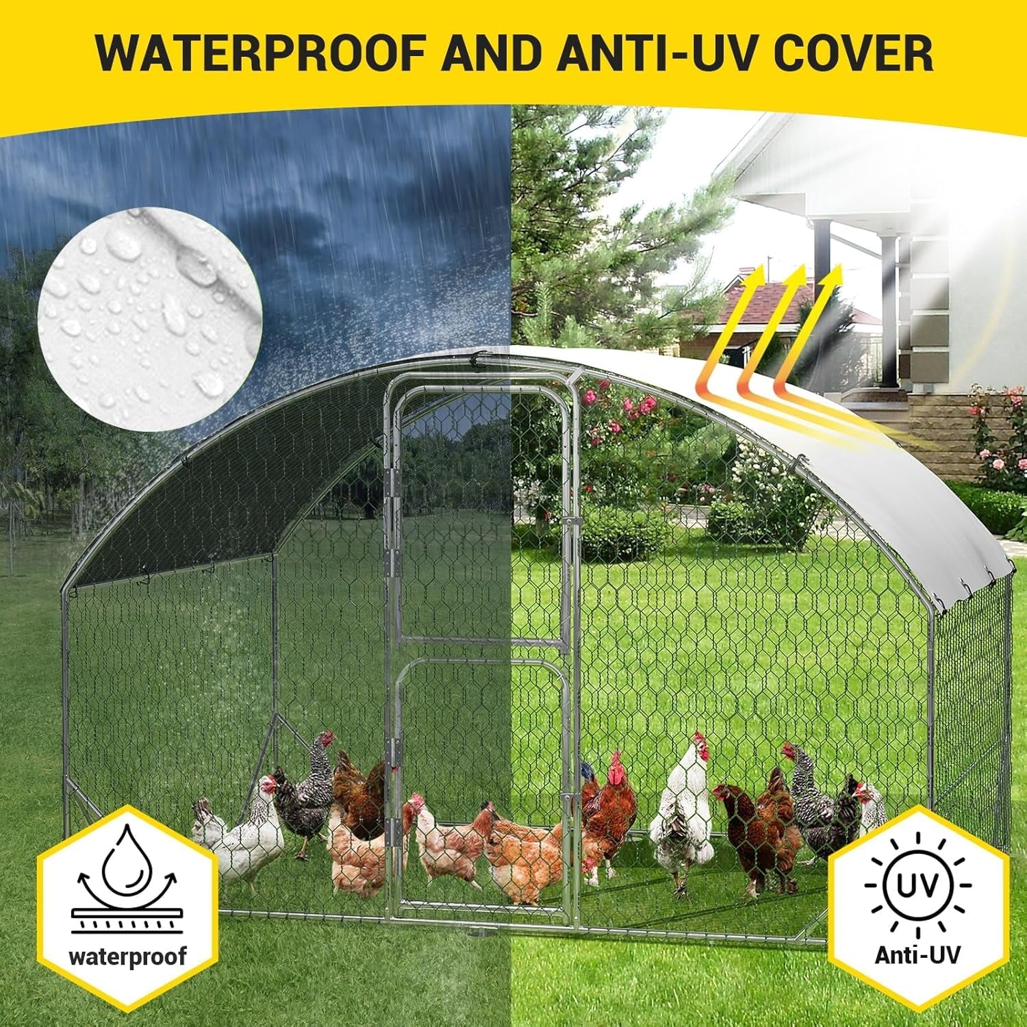 Name: Large Metal Chicken Coop, Dome Chicken Coop with Upgrade Tri-Supporting, Chicken Run with Double Door & Waterproof Cover, Large Chicken Coop for Outdoor Duck Rabbit