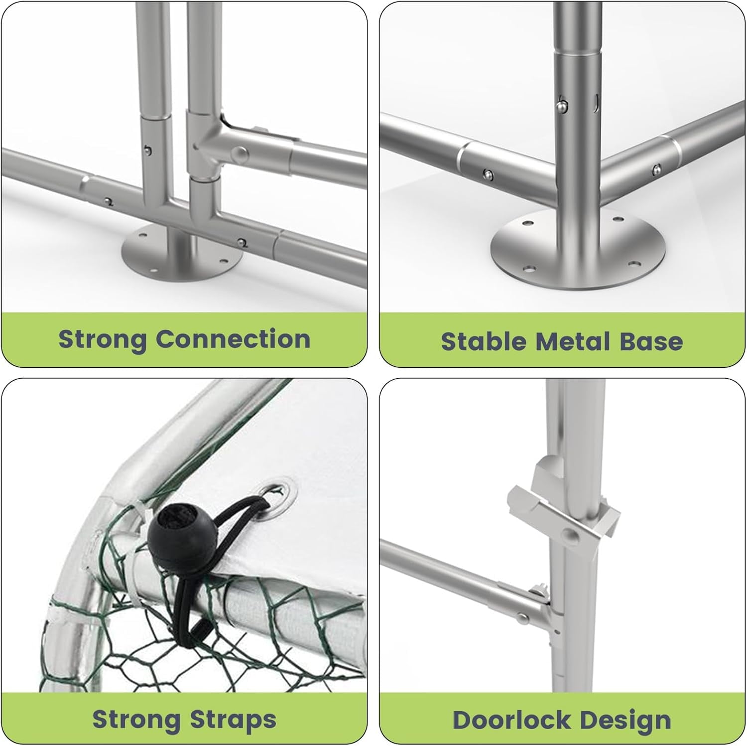 - Durable Galvanized Metal Frame: Built with a heavy-duty galvanized metal pipe frame and protective hexagonal mesh, this chicken pen is sturdy, rust-resistant, and designed for long-lasting outdoor use.