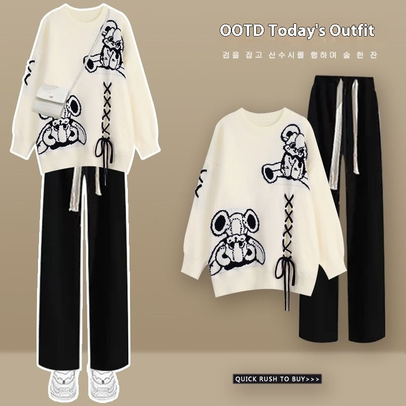 Color:❣❤One-piece apricot sweater❤❣,❣❤One-piece black pants❤❣,❣❤Apricot sweater black pants❤❣
