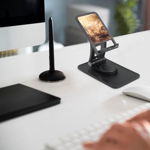 Quill Cell Phone Stand 360° Adjustable Desktop Phone Holder Cradle Compatible With Most Mobile Phones Black
