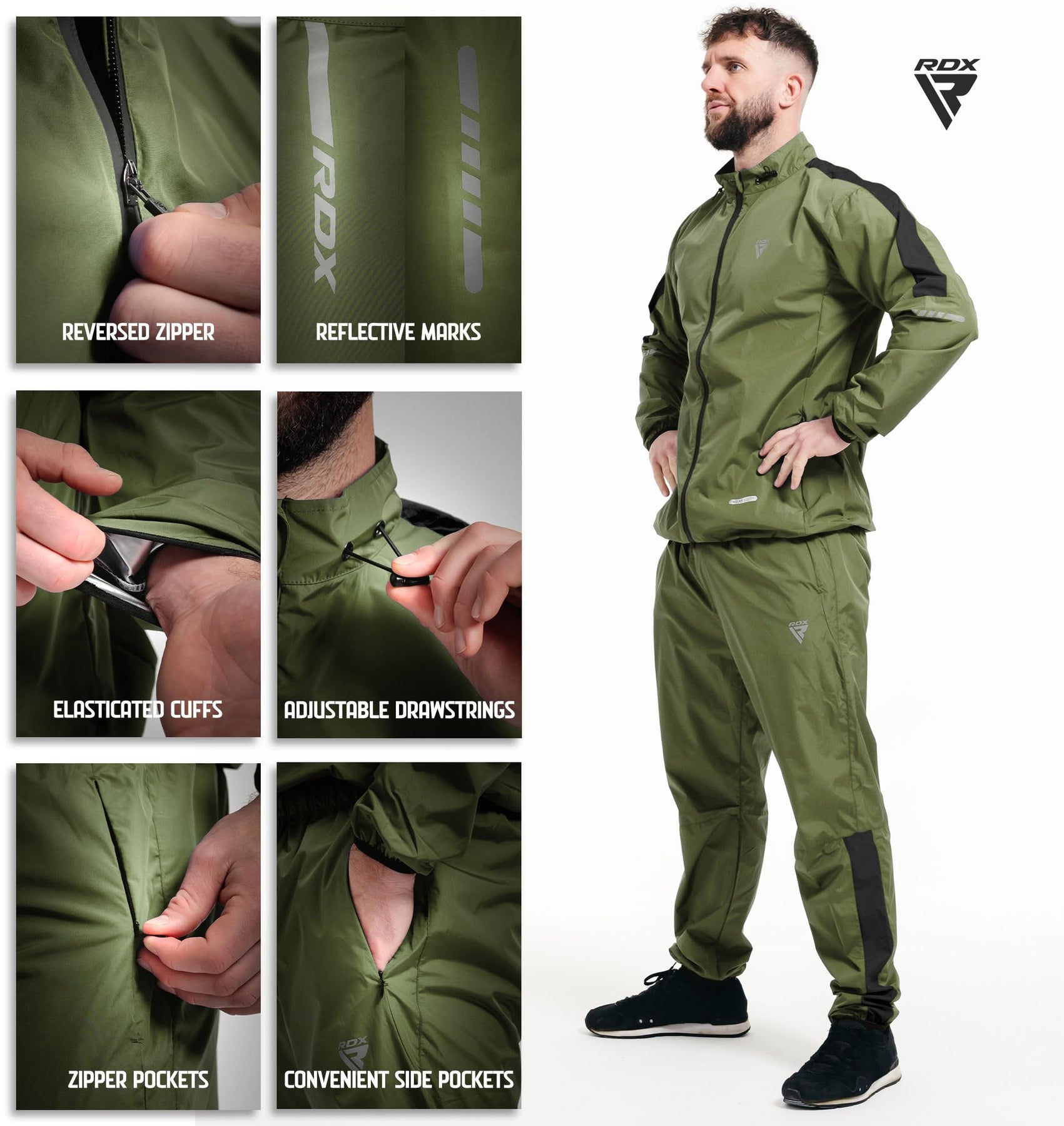 - WEATHERPROOF AND INSULATED The RDX C1 Sauna Suit for men and women has advance DS seam stitching that makes it highly durable. The elasticated openings at the cuffs, jacket base, and waistband combine with the close leg openings to trap the heat inside. The heat suit is ideal for all settings, as it is waterproof and windproof, allowing the users to wear it outdoors as well.