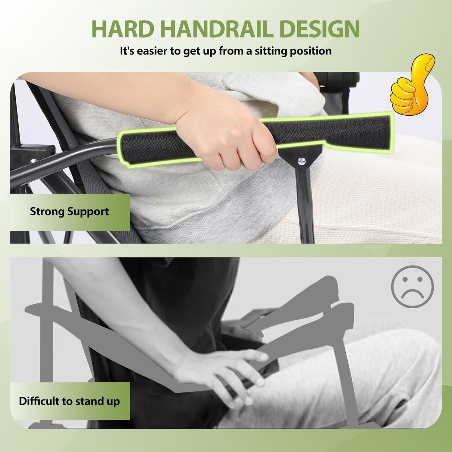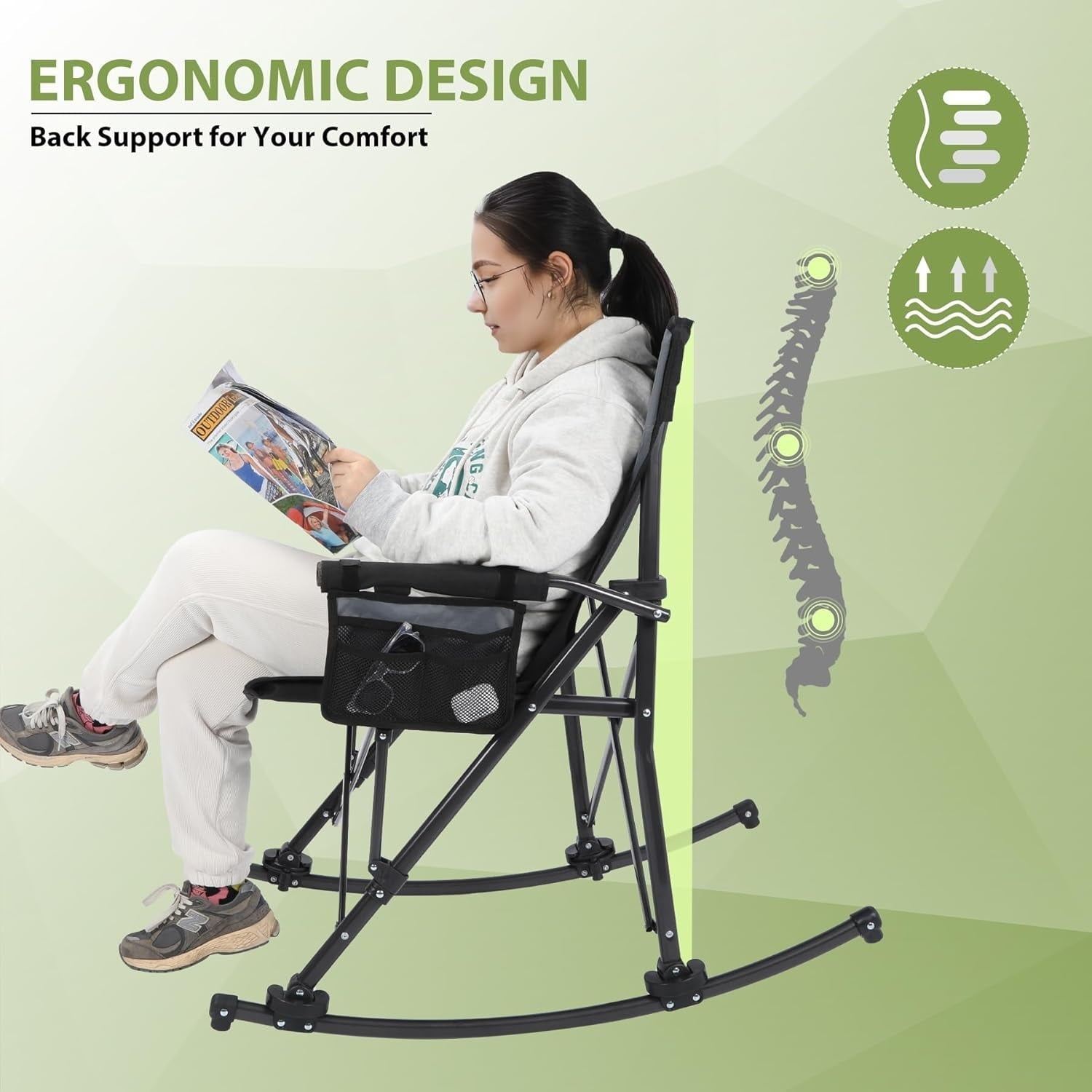 REDCAMP 2 in 1 Oversized Folding Rocking Camping Chair with Removable Rockers, Portable Rocker with High Back, Heavy Duty Hard Armchair for Patio Lawn and Outdoors, Black