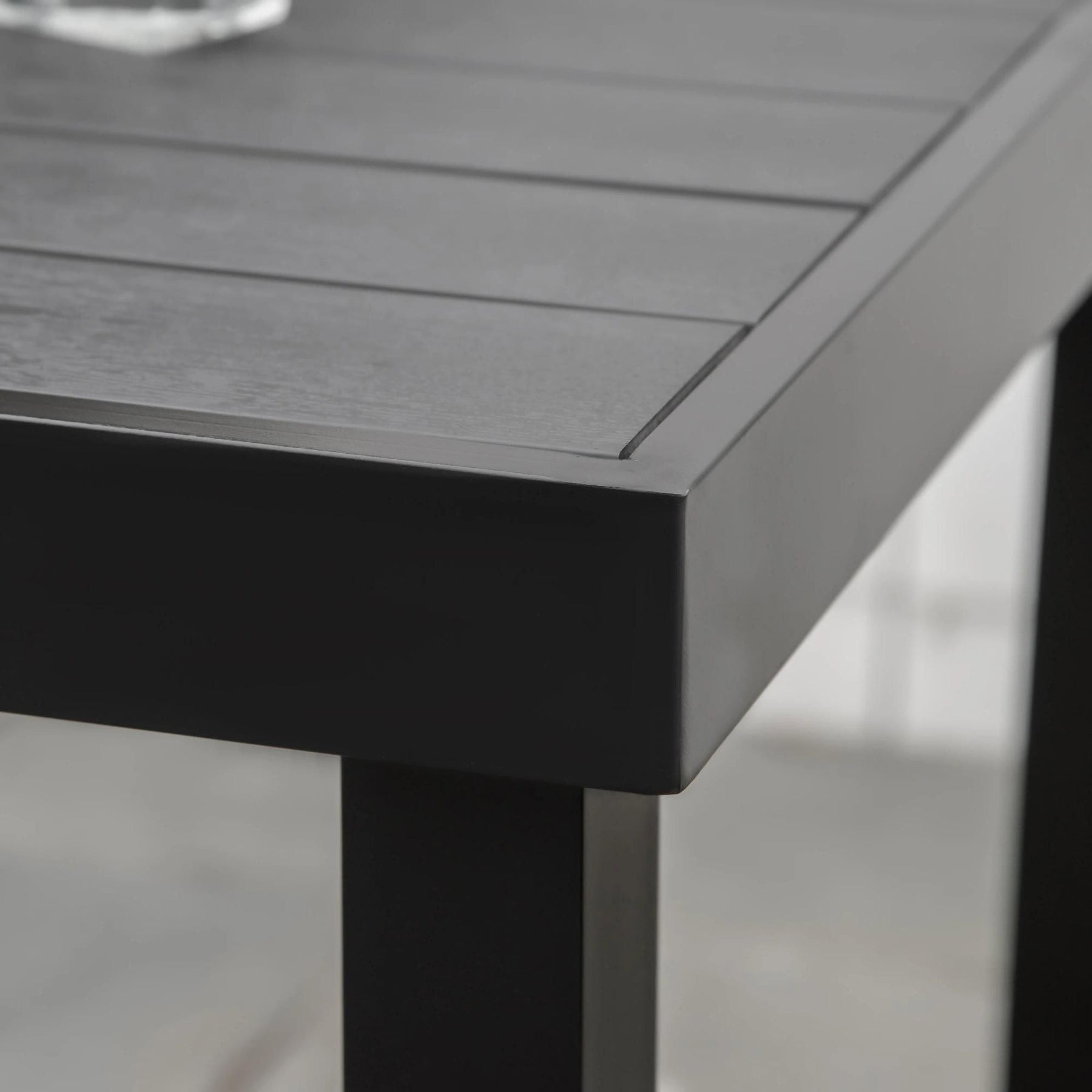Introducing the Resenkos Outdoor Dining Table β the perfect addition to any deck or patio! This stunning piece boasts a large, 4-person dining space, with a wood-like slat tabletop that exudes rustic charm. Crafted from lightweight yet durable aluminium, the frame ensures stability and longevity. The anti-slip footpads provide a secure foundation, while the easy-to-clean surface keeps your space looking pristine. With a weight capacity of 110lbs and a sleek black finish, this metal outdoor table is a must-have for any outdoor living space. Assembly is required, but the included manual makes it a breeze. Elevate your patio with the Resenkos Outdoor Dining Table β 84B-918BK, the ultimate choice for style, durability, and comfort.
