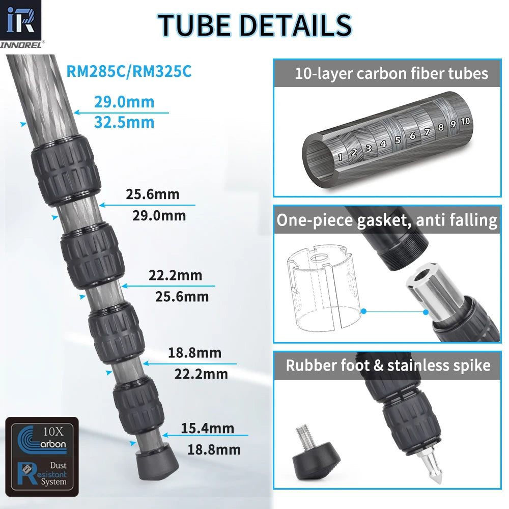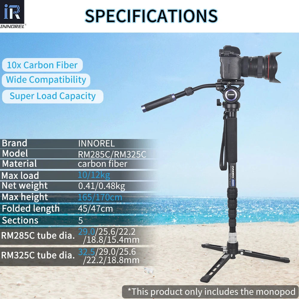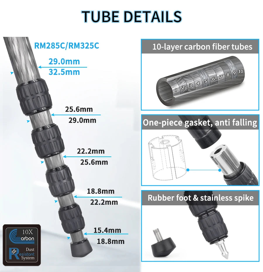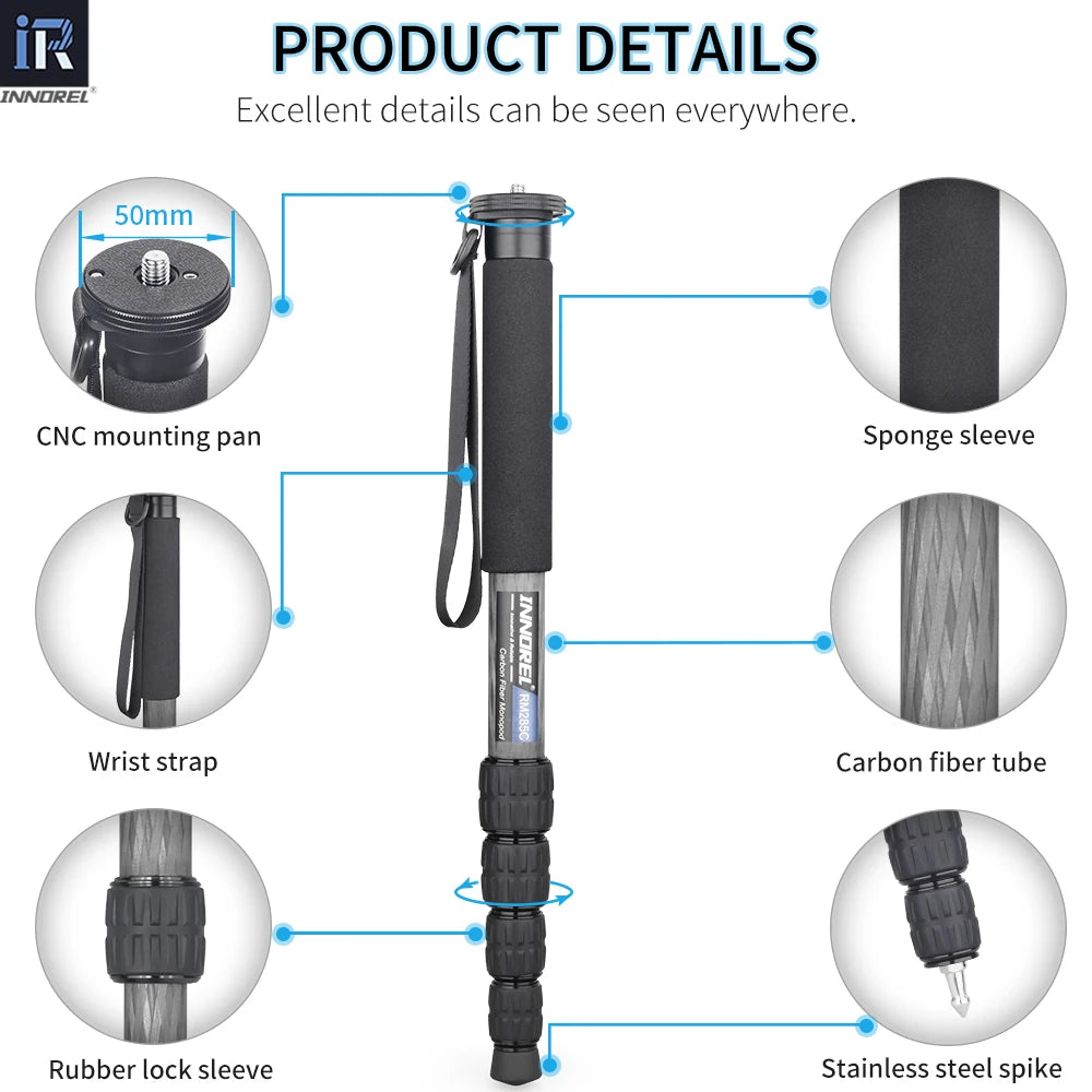 RM285C/RM325C Professional Carbon Fiber Monopod for Canon Nikon Sony DSLR Camera Video Camcorder 5-Section Photography Bracket