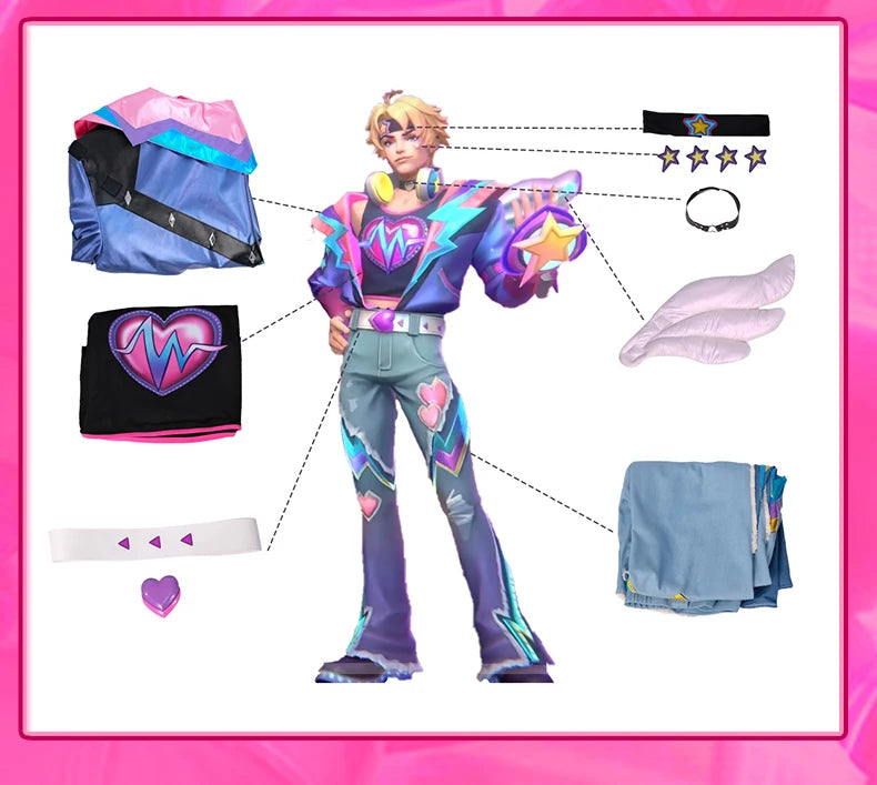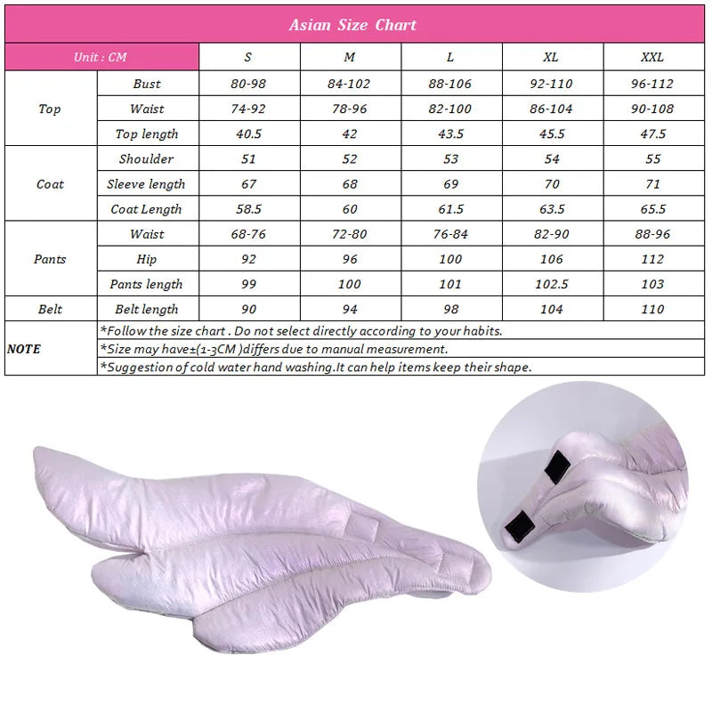 included: Top,pants,coat,belt, belt ornaments,neck ornaments,wing,hair band,stickers