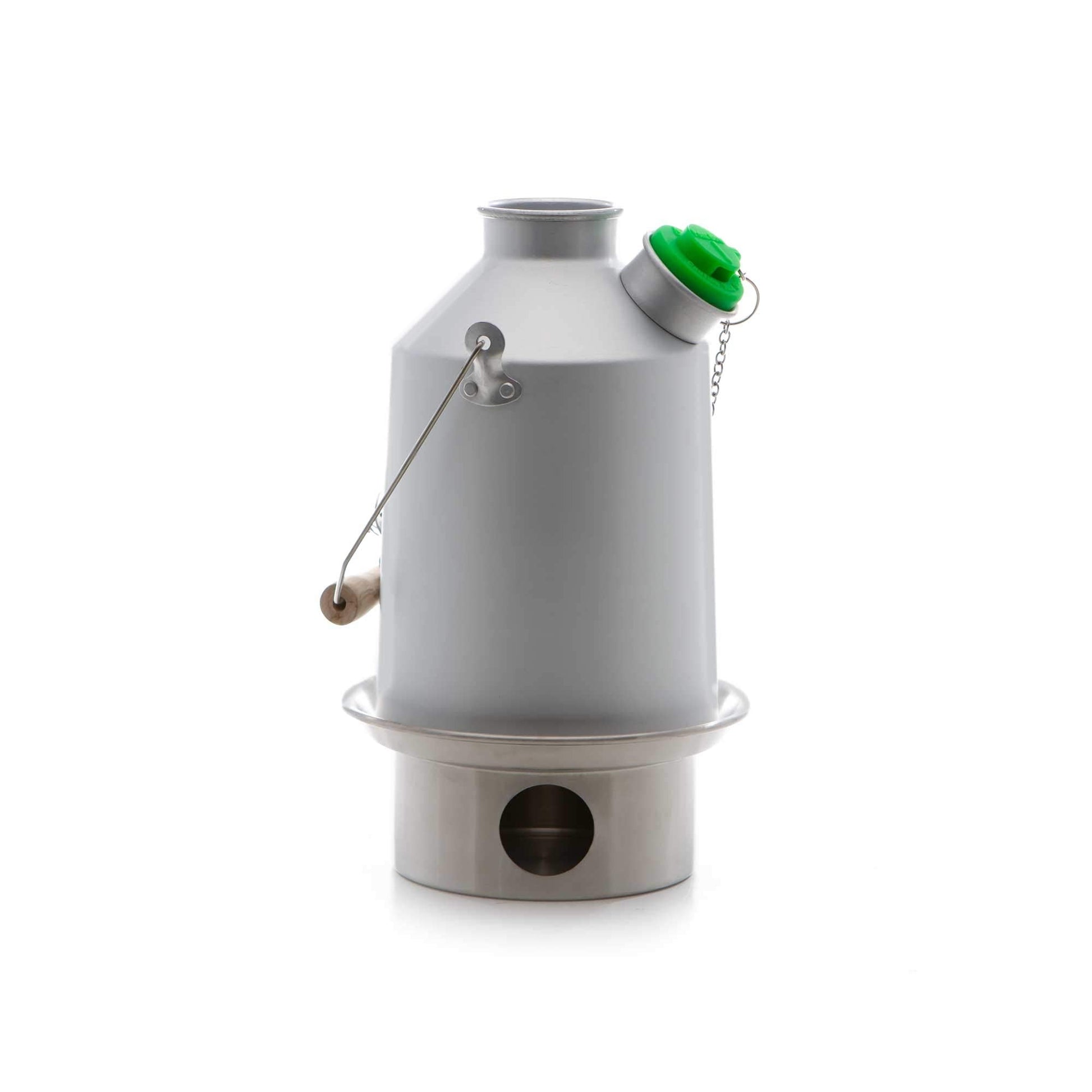 - Scout Kelly Kettle in Aluminium - Green Whistle that sounds off when the kettle boils. All our kettles some with upgraded Stainless Steel Fire-Bases as standard. These are much tougher and more tolerant to higher heat than the old aluminium fire-bases.