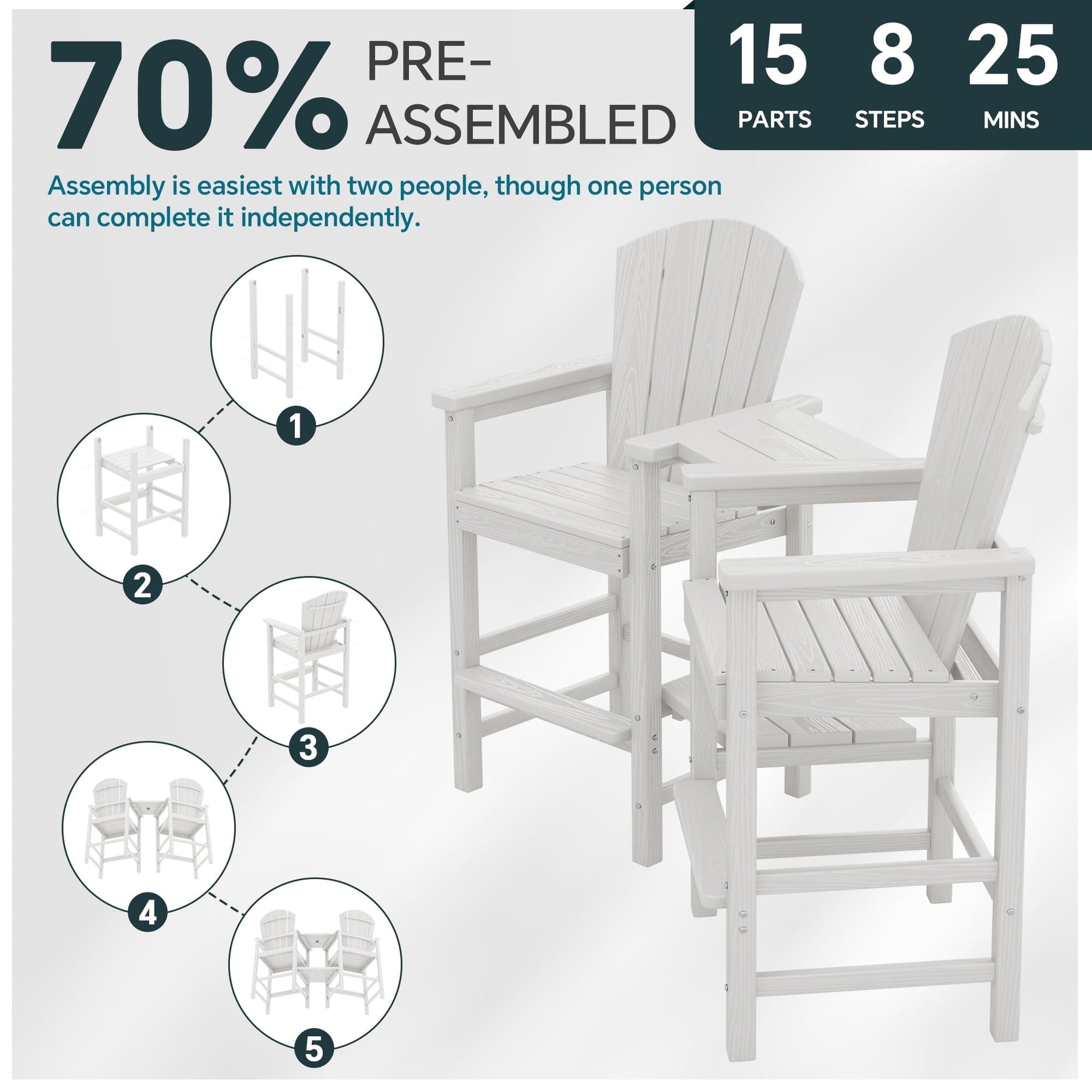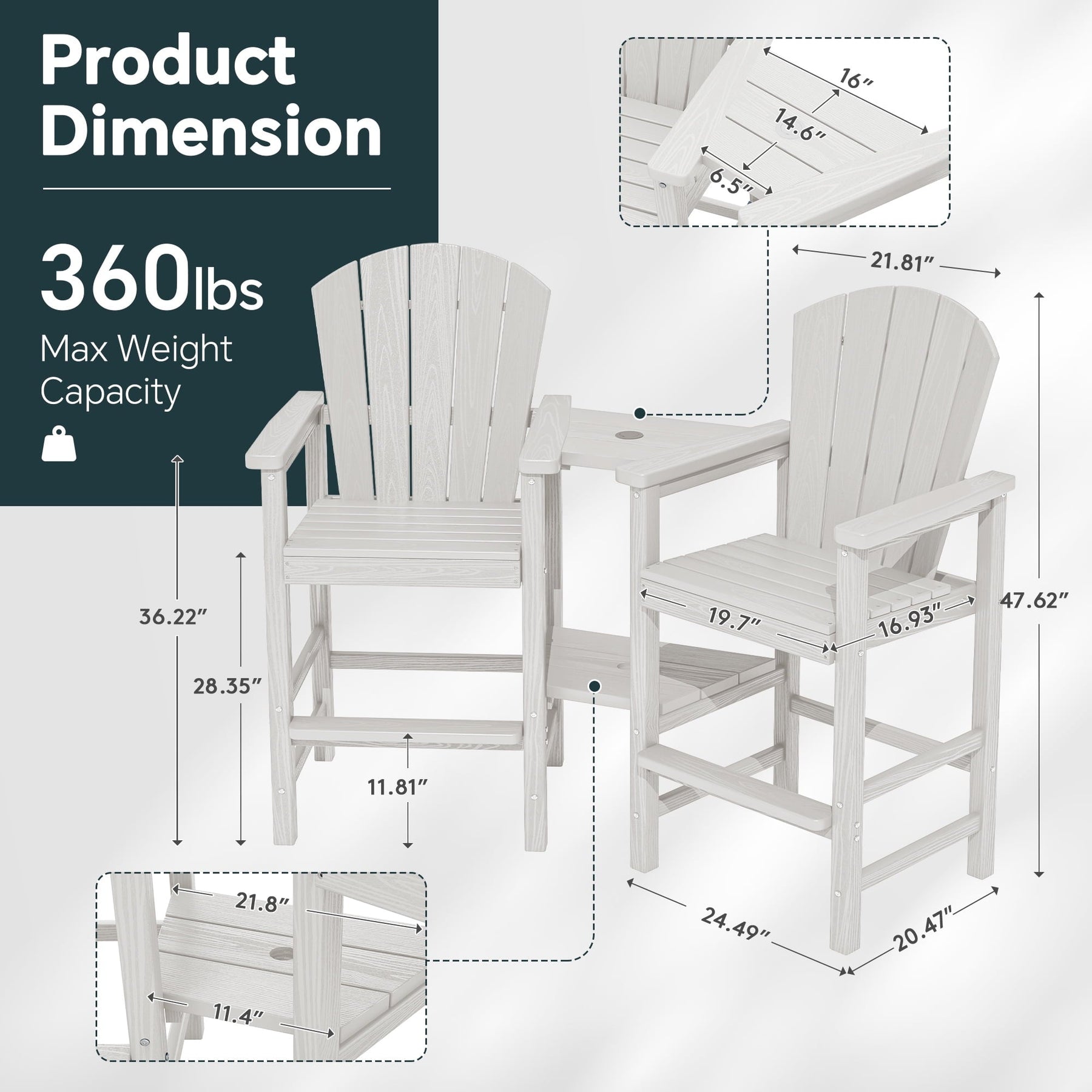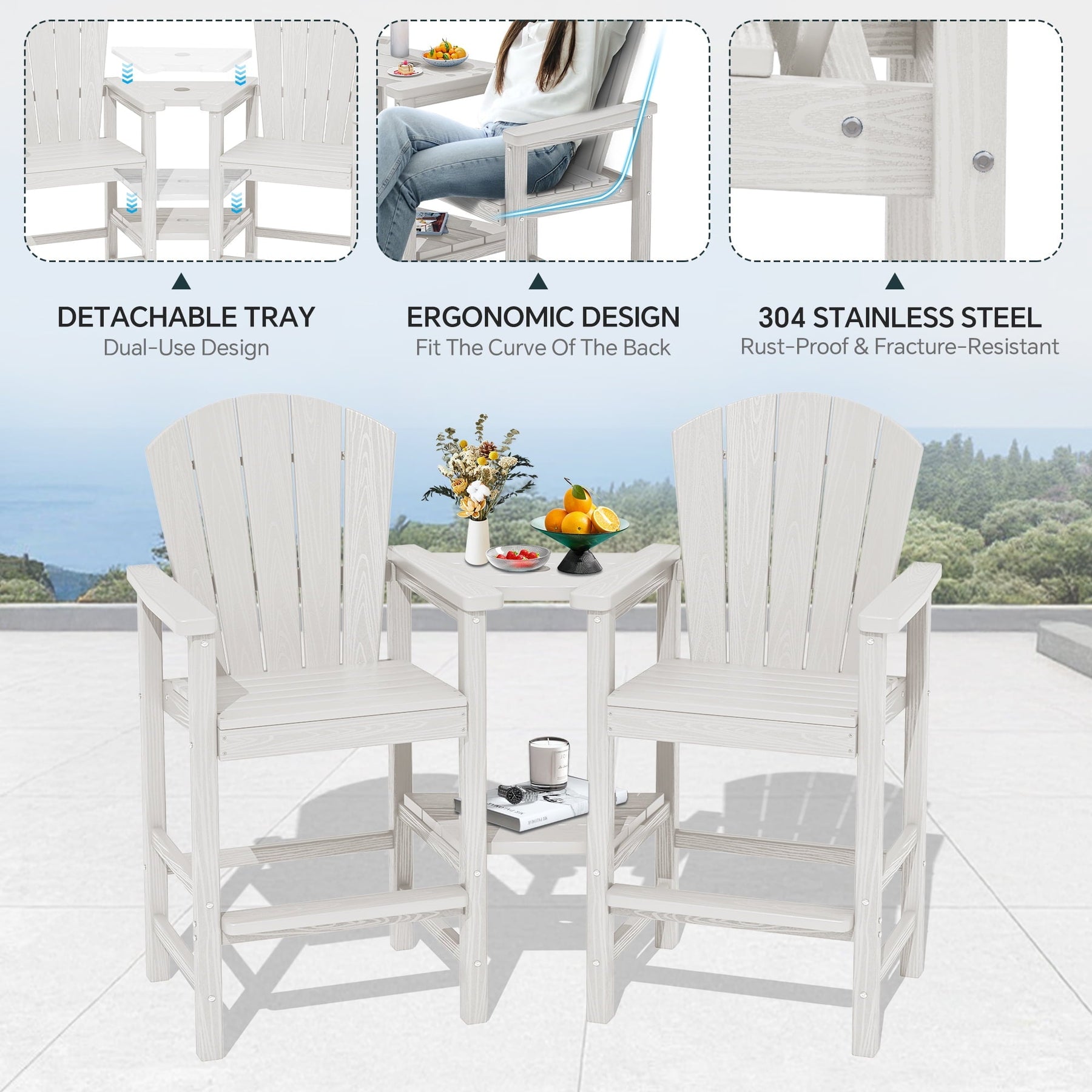SERWALL Tall Adirondack Chairs are designed for ultimate relaxation, blending timeless charm with modern durability. Crafted from high-density polyethylene (HDPE) and secured with 304 stainless steel hardware, these chairs offer exceptional sturdiness and resilience. Engineered to withstand harsh weather conditions, they resist fading under intense sun exposure and won't rust during heavy rains. Enjoy year-round comfort without the maintenance hassles of traditional wood furniture.The widened seat and 15 degree reclined backrest feature an ergonomic design that elevates your comfort to new heights.