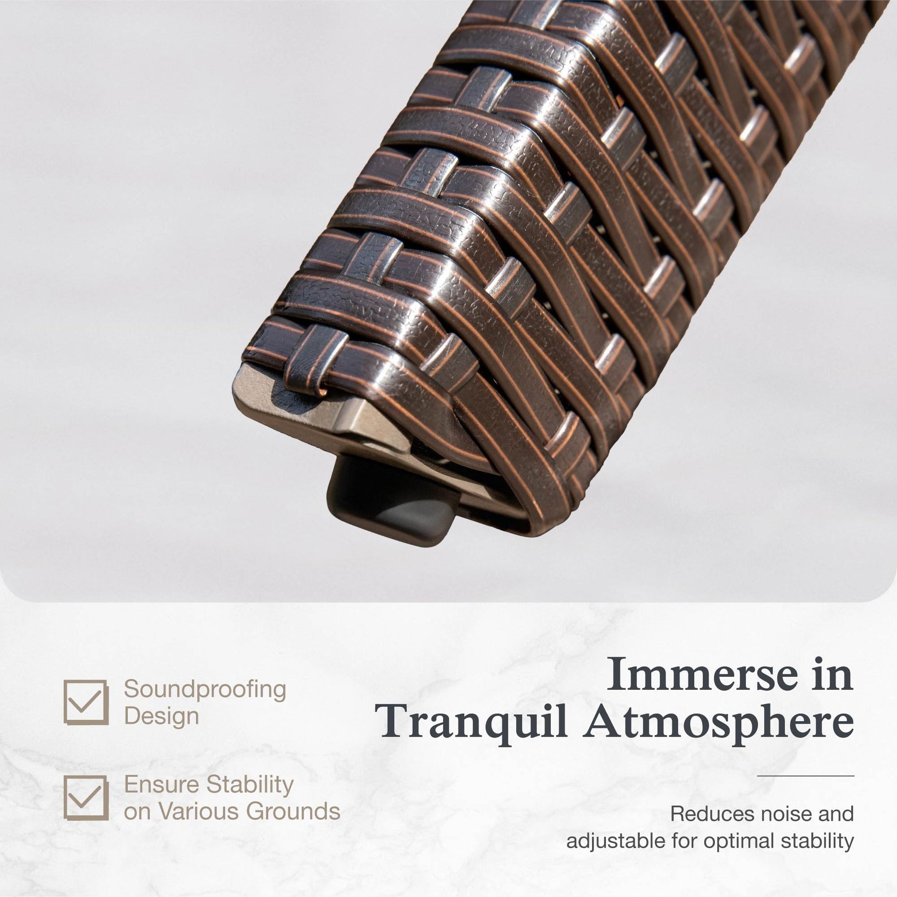 Crafted from eco-friendly acacia wood and rattan materials, this outdoor dining table not only looks great but also feels great, enhancing your dining experience. The adjustable silent plugs reduce noise and allow you to customize the table height, ensuring stability on any surface. The sturdy metal frame is designed with a protective plug to prevent deformation during transport, ensuring long-lasting use.