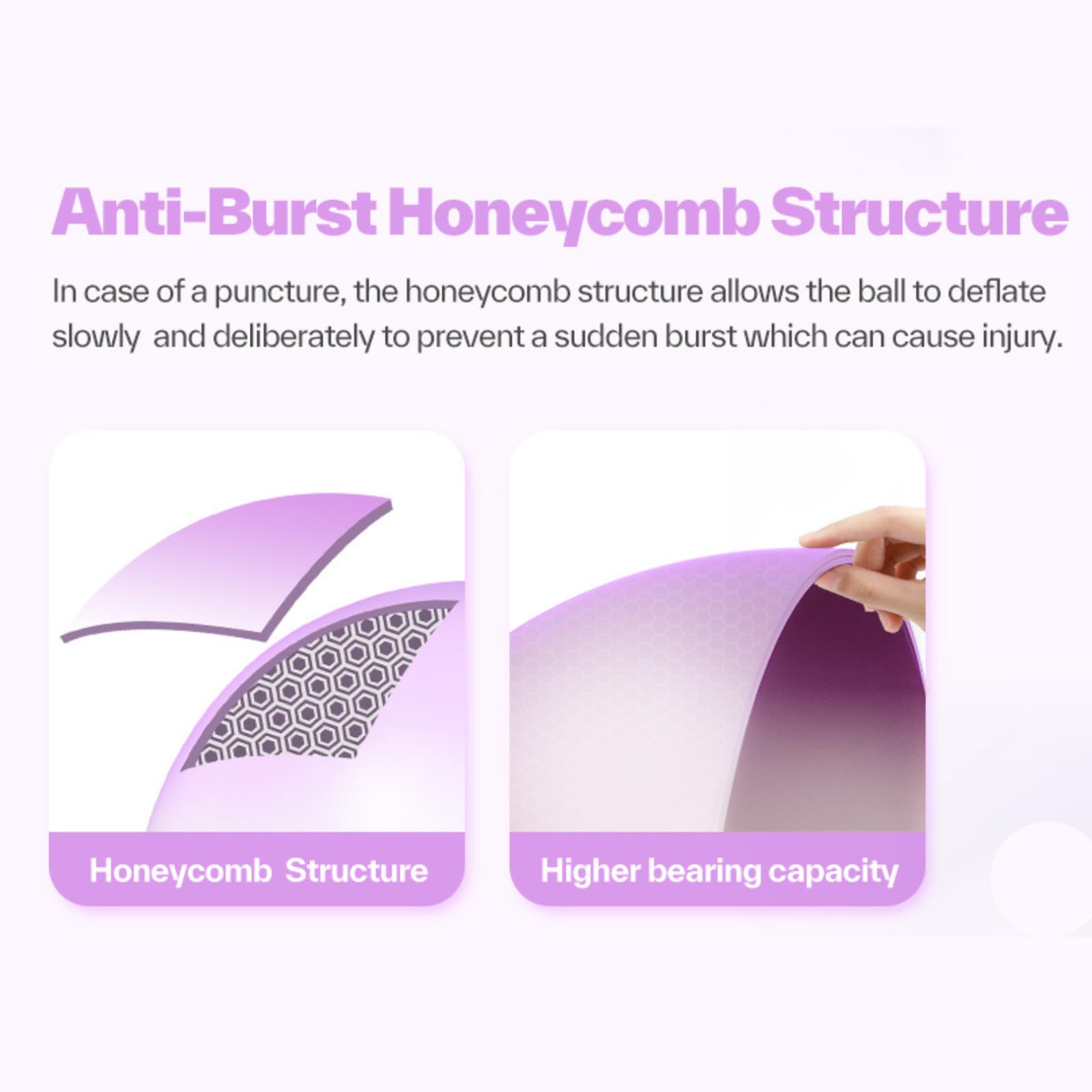 - ✿✿ Anti-Burst Structure: Even if the Sportneer balance ball is punctured in an abnormal situation, it won’t burst suddenly thanks to the honey comb structure and advanced foaming technology, offering you the best protection and avoiding the injury caused by a sudden fall.
