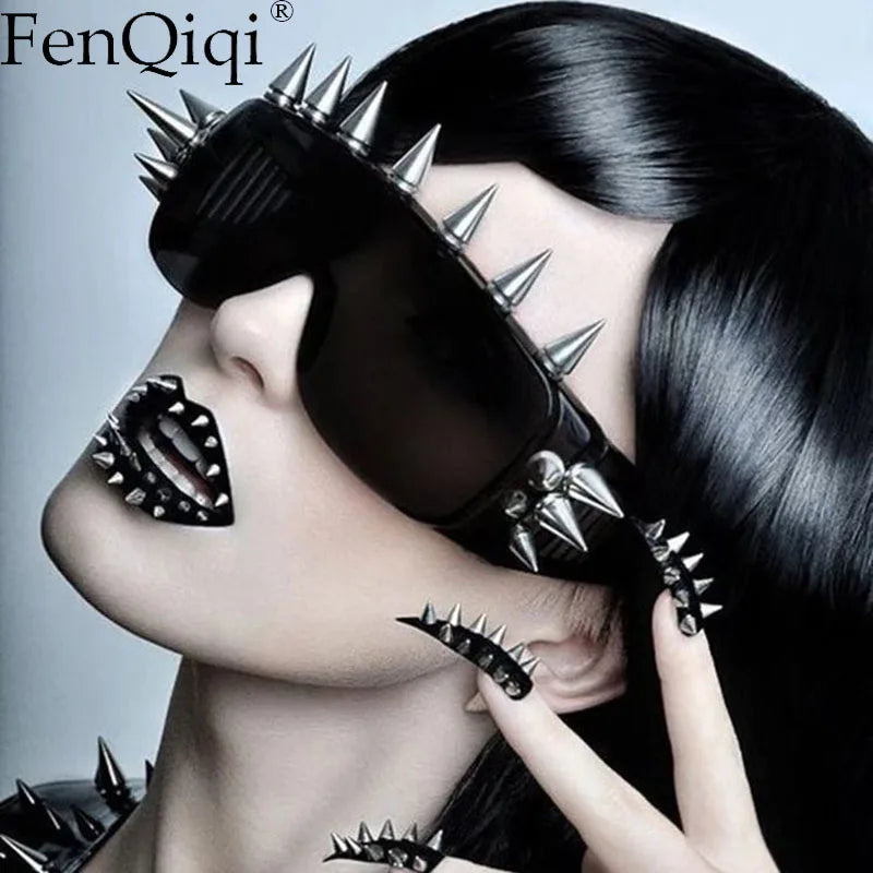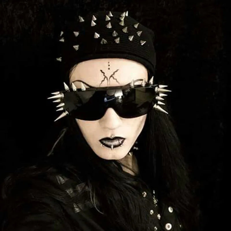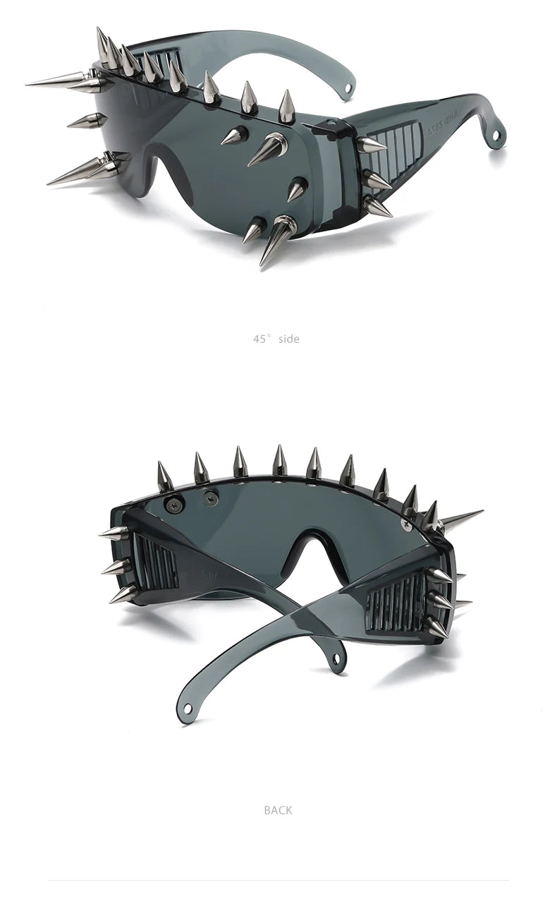 Name: Steampunk Rivet Cyber Spike Decor Goggles Wild Rock Sun Glasses Women Men Metal Punk Conjoined Sunglasses Trendy Cool Eyeglasses