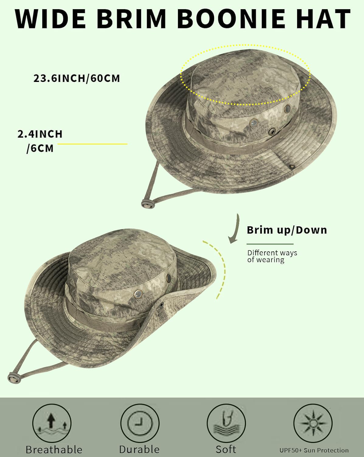• GOOD DESIGN WIDE BRIM HAT:The well-designed summer outdoor hat has two ways to use it. Both sides are equipped with rust-proof buttons. When the brim is rolled up, it is a cowboy hat. Loosen it, will be a fashionable sun-proof fisherman hat/safari hats for men and women.