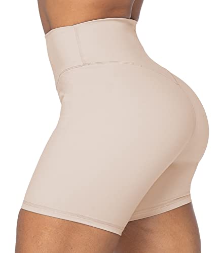 Sunzel No Front Seam High Waist Biker Shorts for Women, Squat Proof Yoga Workout Gym Bike Shorts 5" Greenery Small