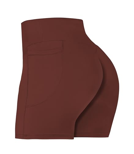 Sunzel Women's No Front Seam Biker Shorts with Pockets, High Waist Tummy Control Yoga Workout Gym Bike Shorts 5" Inseam Navy Blue X-Large