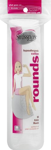 Swisspers Premium 100% Natural Cotton Rounds, Hypoallergenic, Reclosable Bags, 80-Count Bag