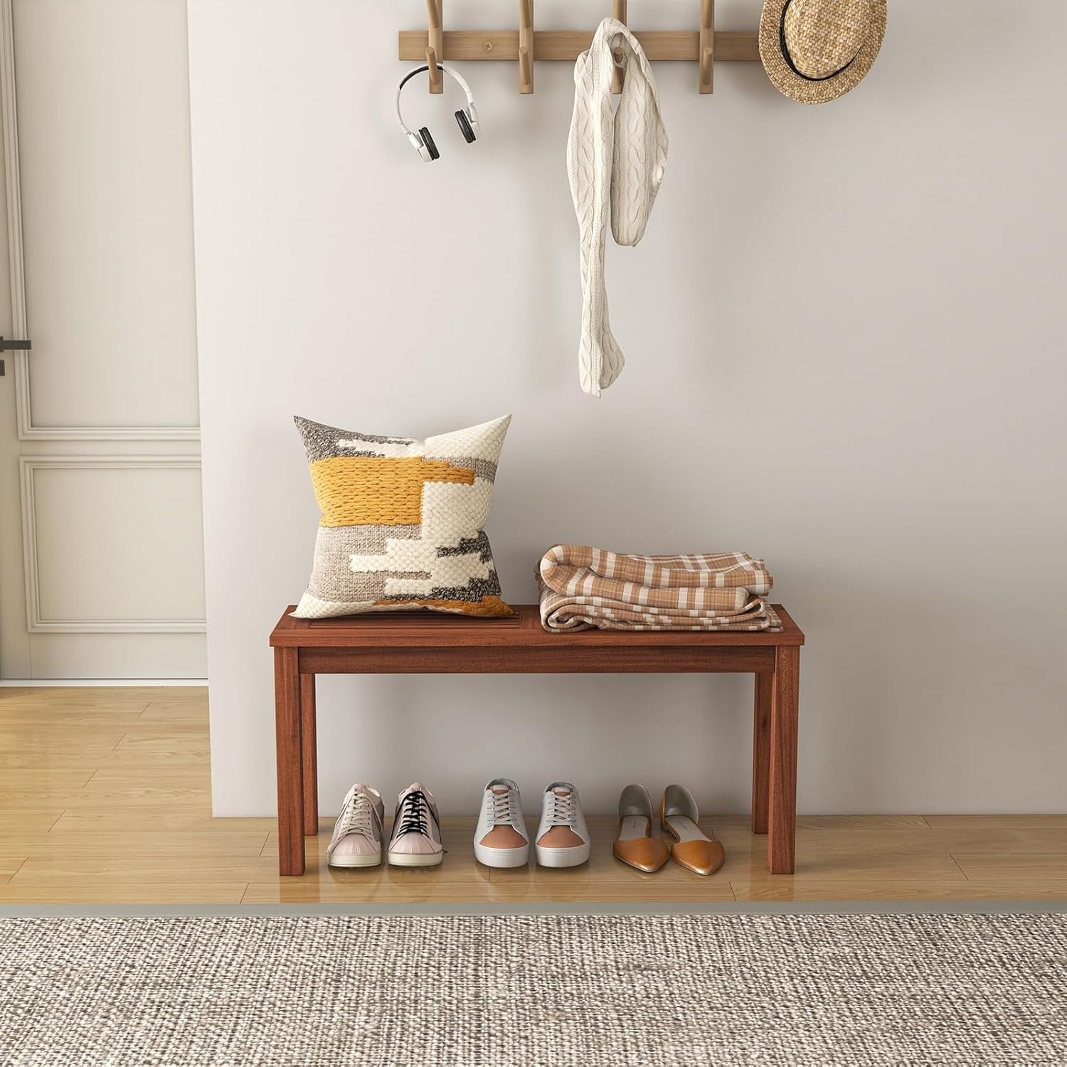 Welcome! Elevate your outdoor space with our Sycol Outdoor Backless Bench β where rustic charm meets timeless functionality! This 2-seat patio bench features a breathable slatted seat crafted from natural wood, perfect for entryways, gardens, or deck gatherings. The weather-resistant design ensures durability through seasons, while the simple rustic style adds warm, organic appeal to any setting. Whether used as a dining bench, garden accent, or entryway seat, its compact size fits seamlessly into small spaces. The slatted construction prevents water pooling and offers airy comfort, making it ideal for outdoor meals or morning coffee. Easy to place and maintain, this bench combines sturdy construction with natural beauty. Discover how it transforms your backyard, deck, or garden into a cozy, inviting retreat today!β
