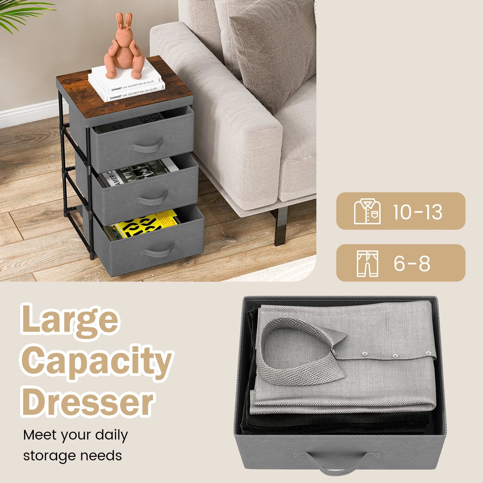 Tall Fabric Dresser with 3 Drawers