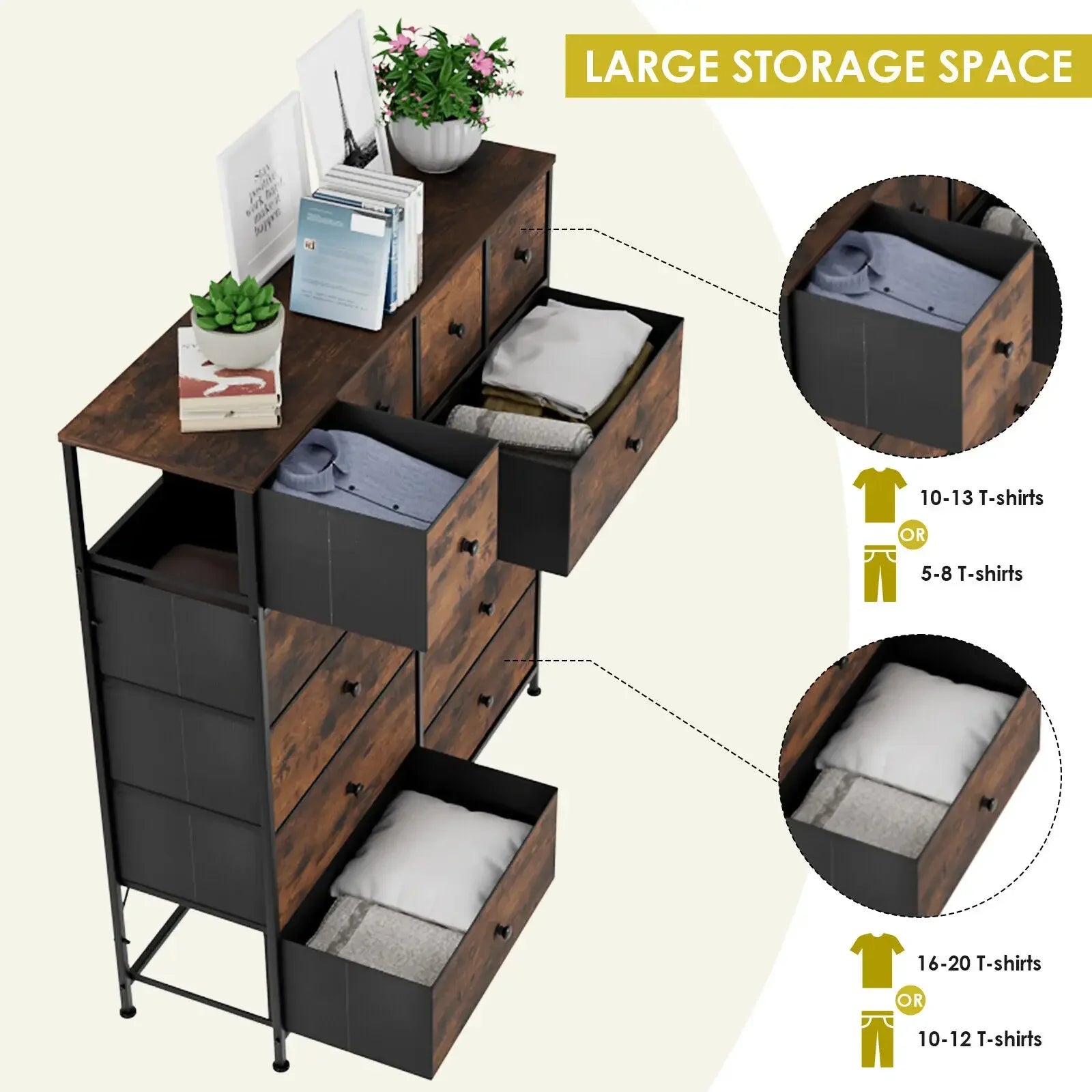 Maximize storage and organization with our Tall Fabric Dresser with Drawers. Made of durable and sturdy fabric, this dresser includes multiple drawers to store and categorize all your belongings. With its tall design, it saves valuable space while keeping your items easily accessible.