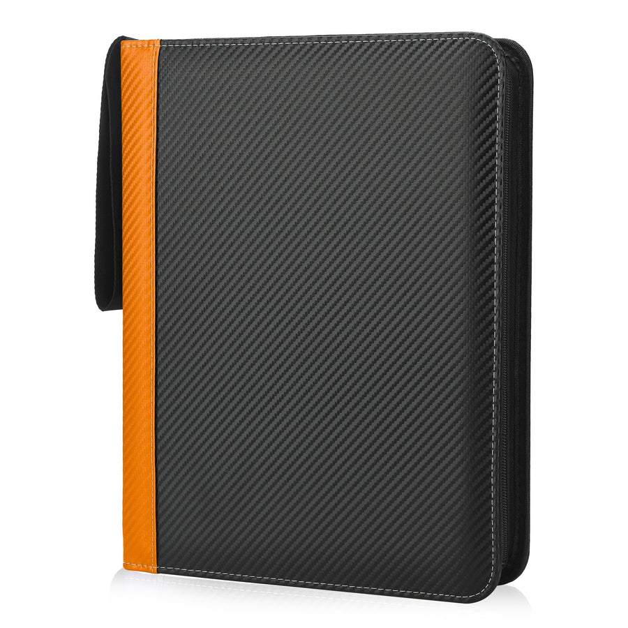 TCGUARD 9 Pockets Trading Card Binder with Sleeves Card Organizer, 900 Double Sided Pocket PU Card Collection Binder, Baseball Binder,for Sports Card, MTG, TCG Yugioh Card (Orange)