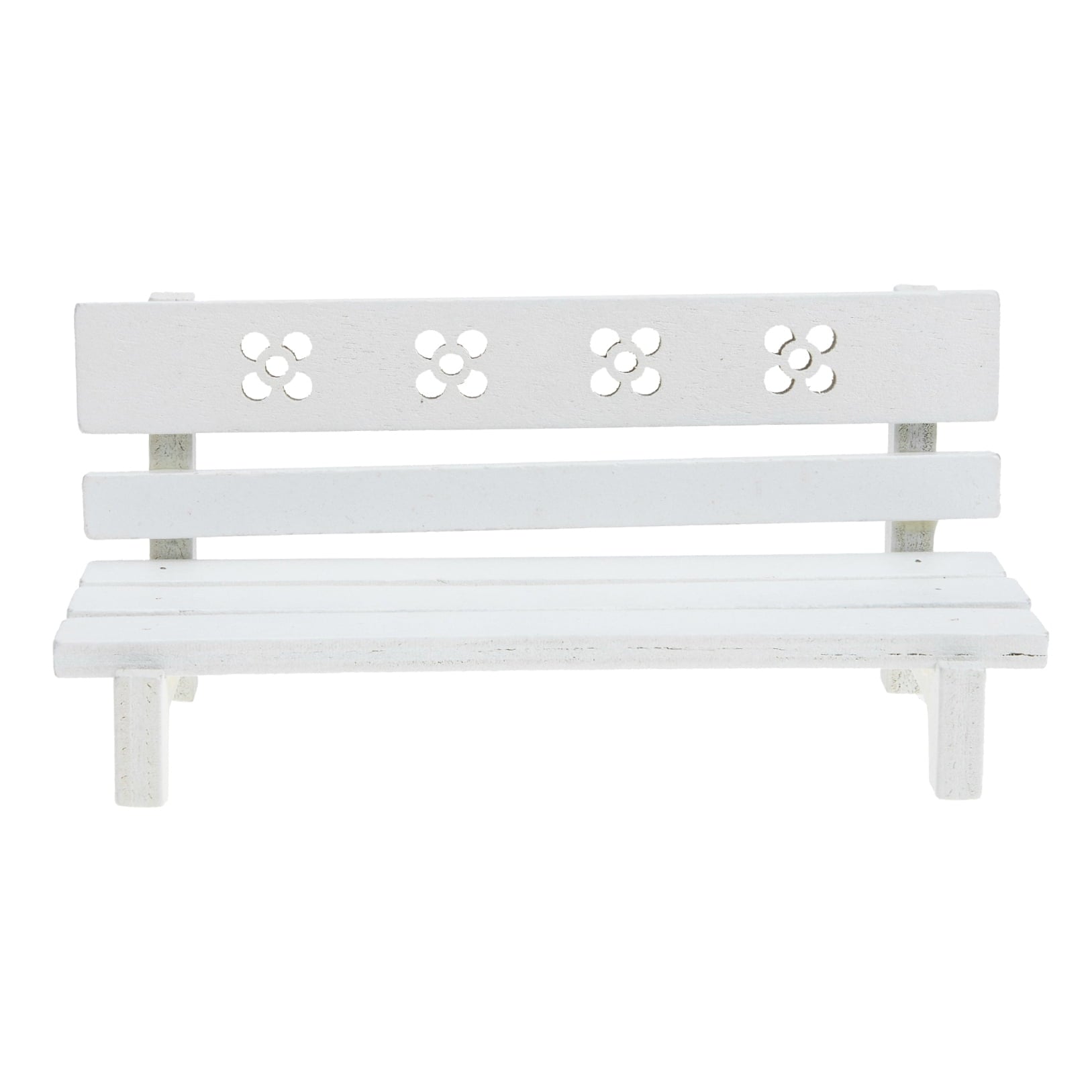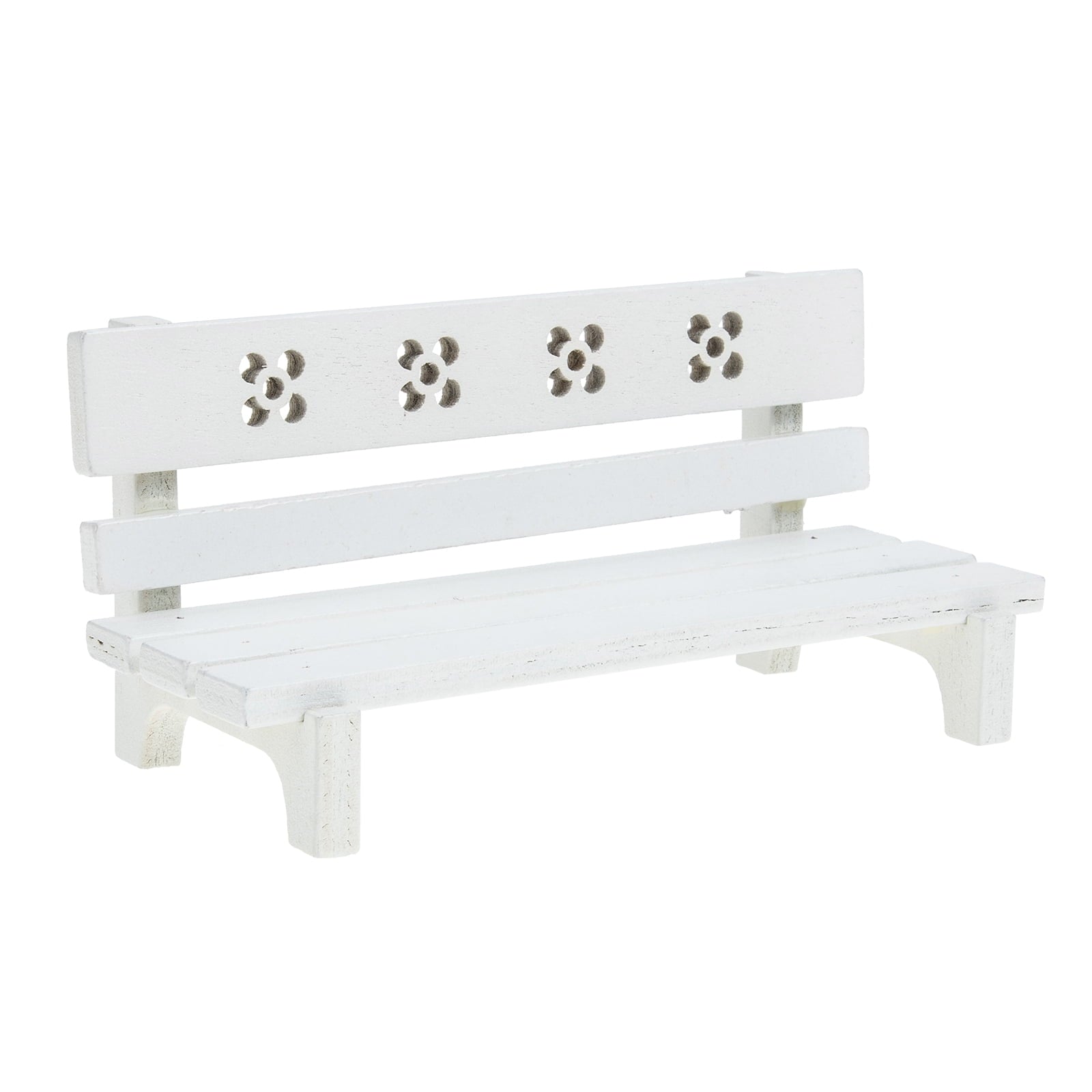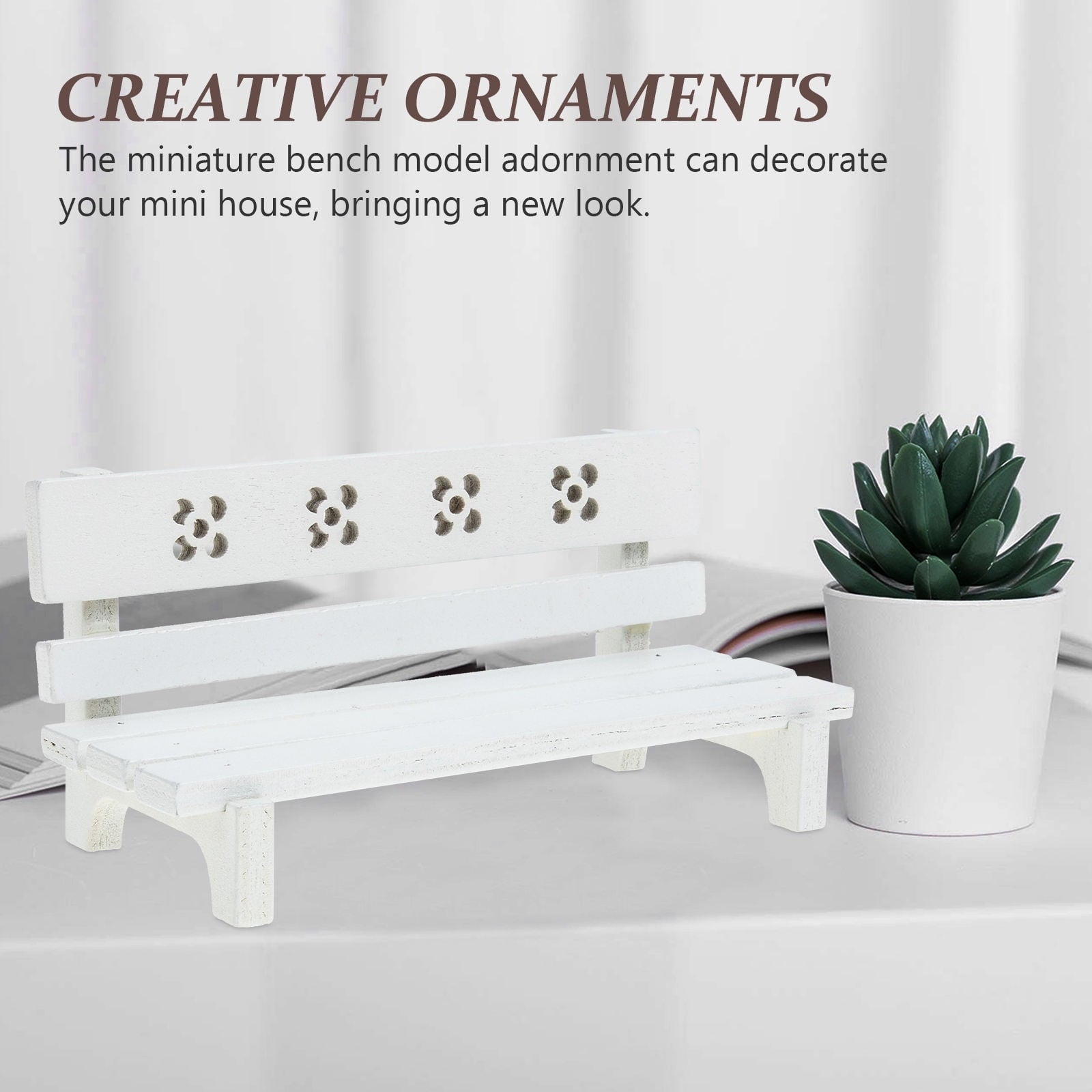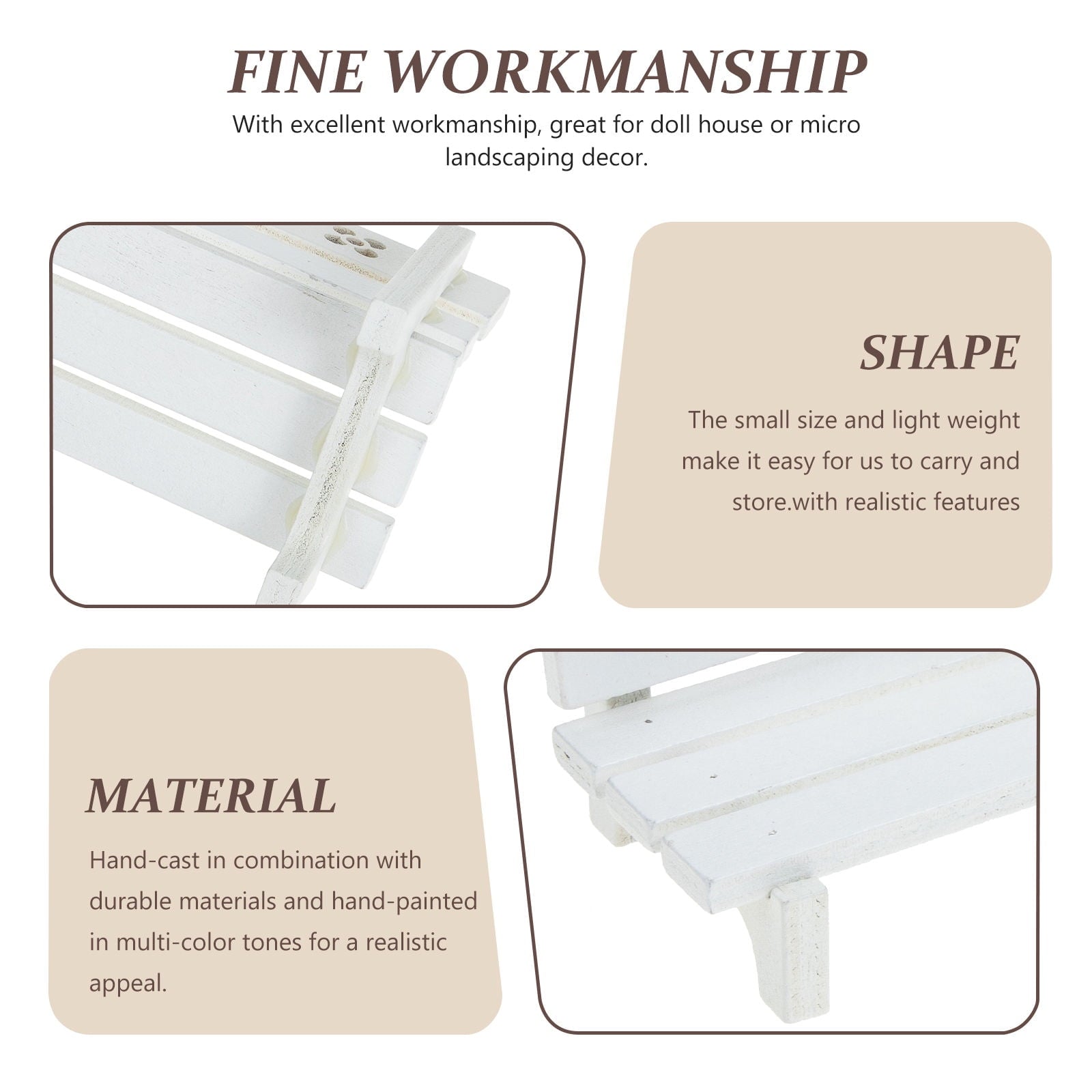 Perfect for collectors and hobbyists, this white miniature garden bench brings a vintage touch to any dollhouse or micro landscaping project. Its wood and plastic construction ensures durability while adding charm to indoor decorations.-mini dollhouse bench