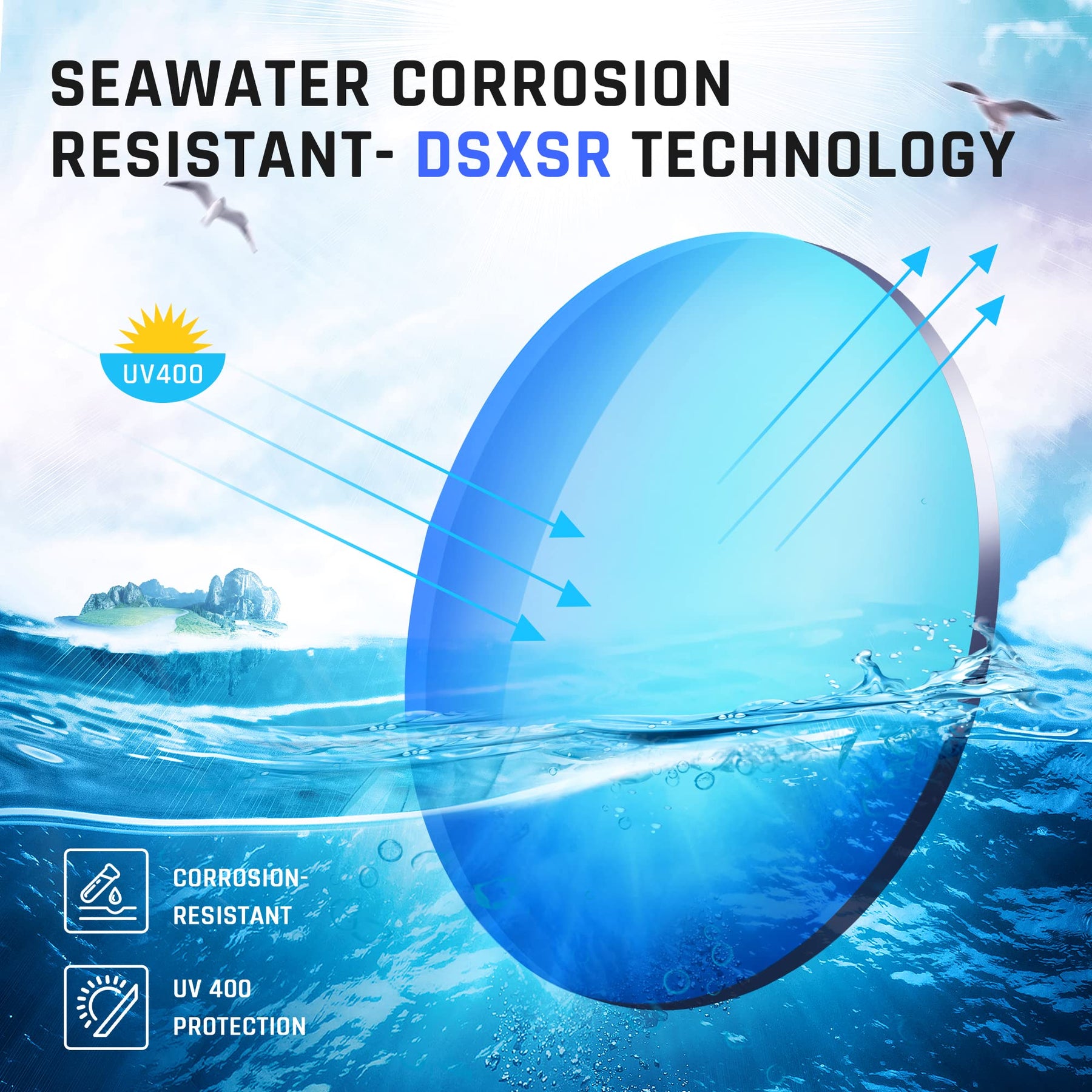 - 【Polarized TAC Lens Technolog】TOREGE saltwater resistant hydrophobic & olephobic coating can protects mirrored lenses from being corroded by seawater. This lens can blocks 100% harmful light, like blue light , eliminate glare and reflected light. REVO colorful TAC lens restore true color improve visual clarity and contrast effectively, making the vision more clear and real. This sunglasses will give the complete UV400 protection for people to protect their eyes perfectly.