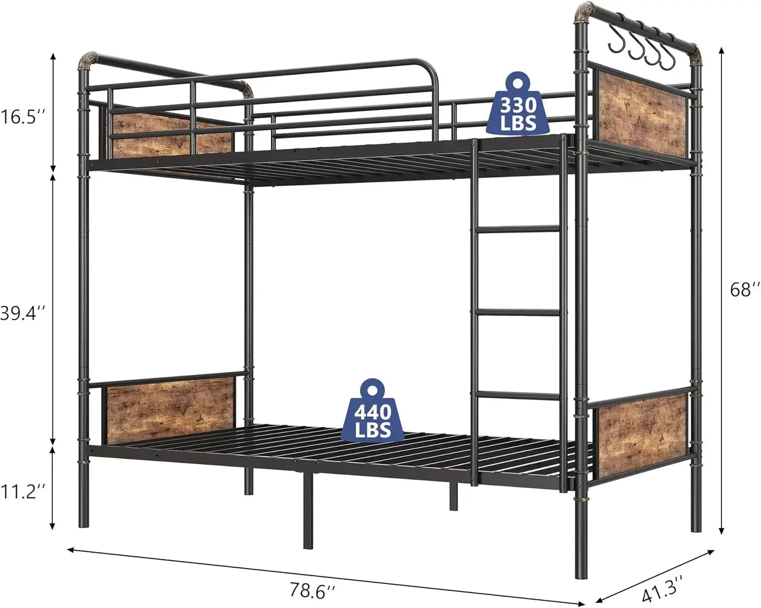 Introducing the Twin Over Twin Bunk Bed - the perfect space-saving solution for your kids' bedroom. With its durable metal frame and classic design, this bunk bed will not only provide a comfortable and safe sleeping space for your children, but also add a touch of style to their room. Say goodbye to cluttered bedrooms and hello to functional and stylish living.