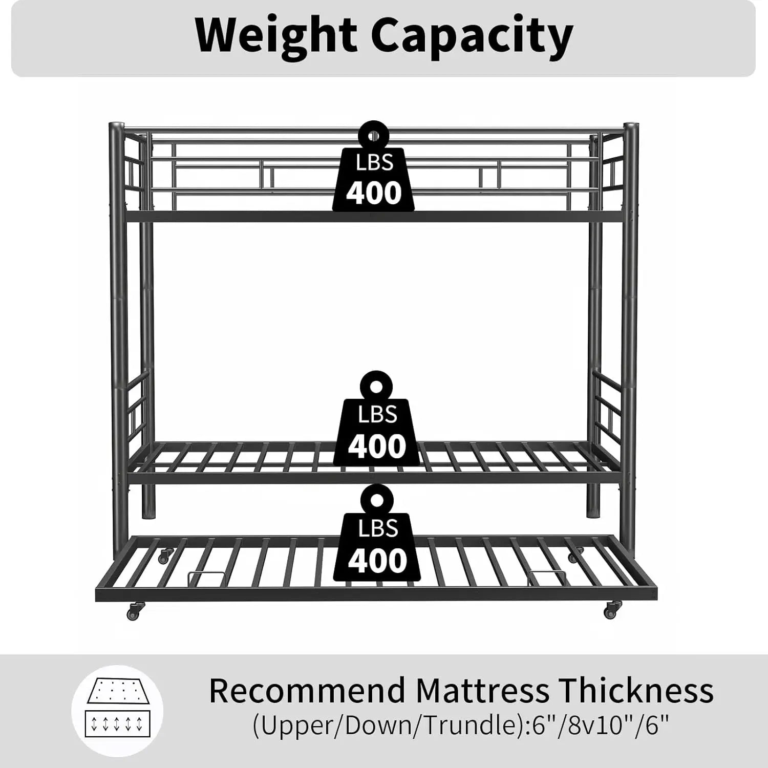This Twin Over Twin Bunk with Trundle offers space-saving functionality while providing a comfortable sleeping option for two. With its durable metal frame and versatile design, this bunk bed is a practical and stylish addition to any bedroom or guest room. The trundle bed adds an extra sleep option for guests or sleepovers.