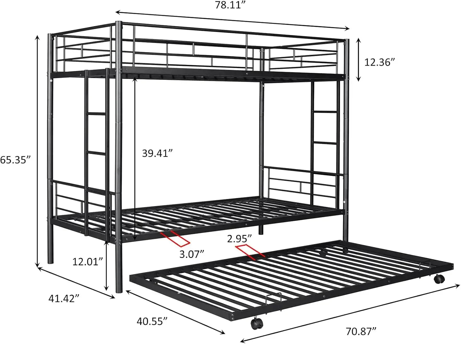 This Twin Over Twin Bunk with Trundle offers a space-saving and versatile solution for any bedroom. With two twin beds and an additional trundle, this bunk bed can comfortably accommodate multiple sleepers while providing easy access and convenience. Perfect for kids' rooms or guest rooms.
