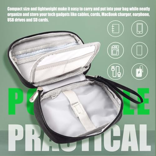 - Portable and Practical: compact size and easy to carry and put into your bag while neatly organize and store your tech gadgets like cables, cords, charger, earphone, USB drives and SD cards.