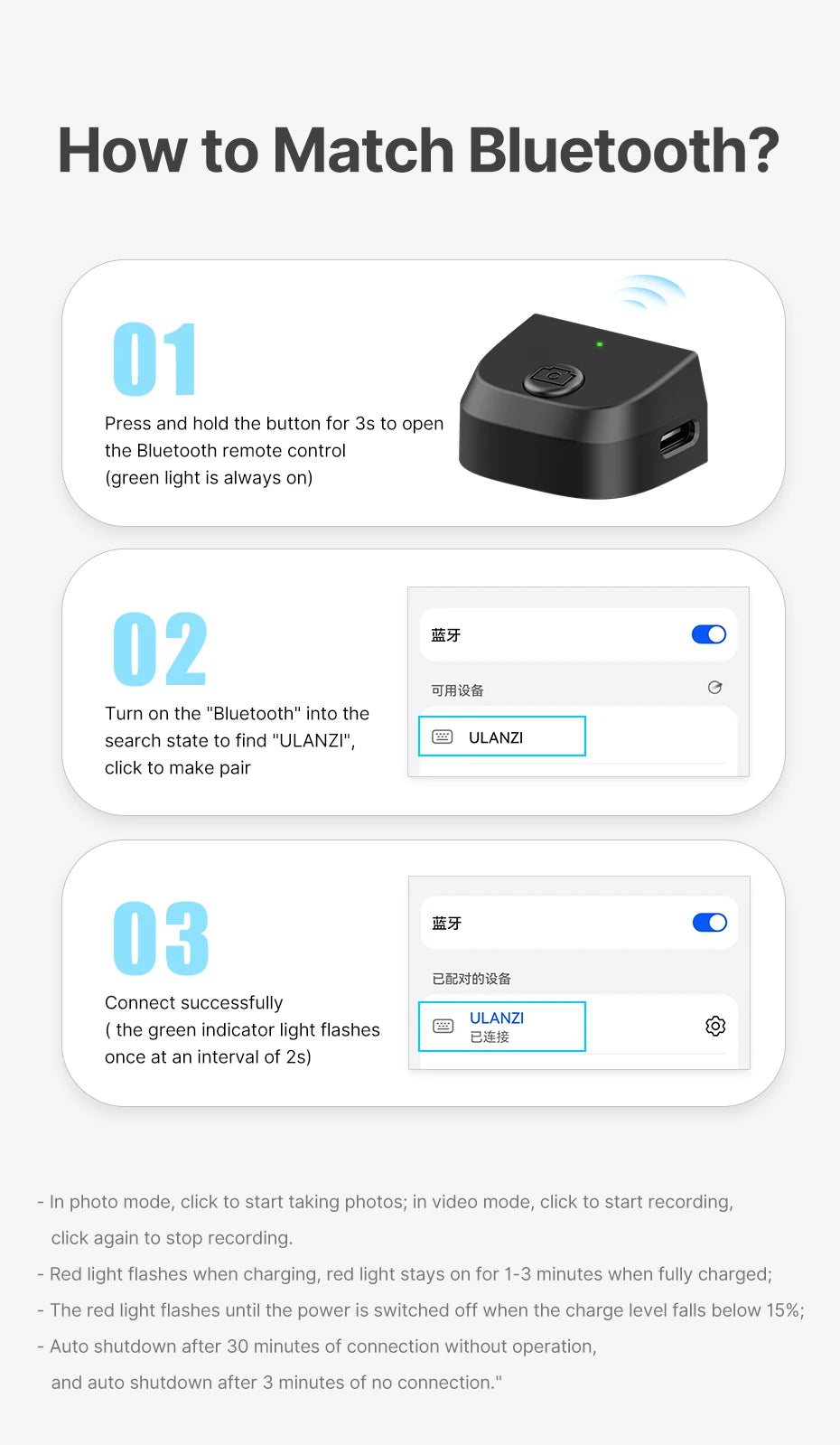Remote Comtrol only One button: Take a photo