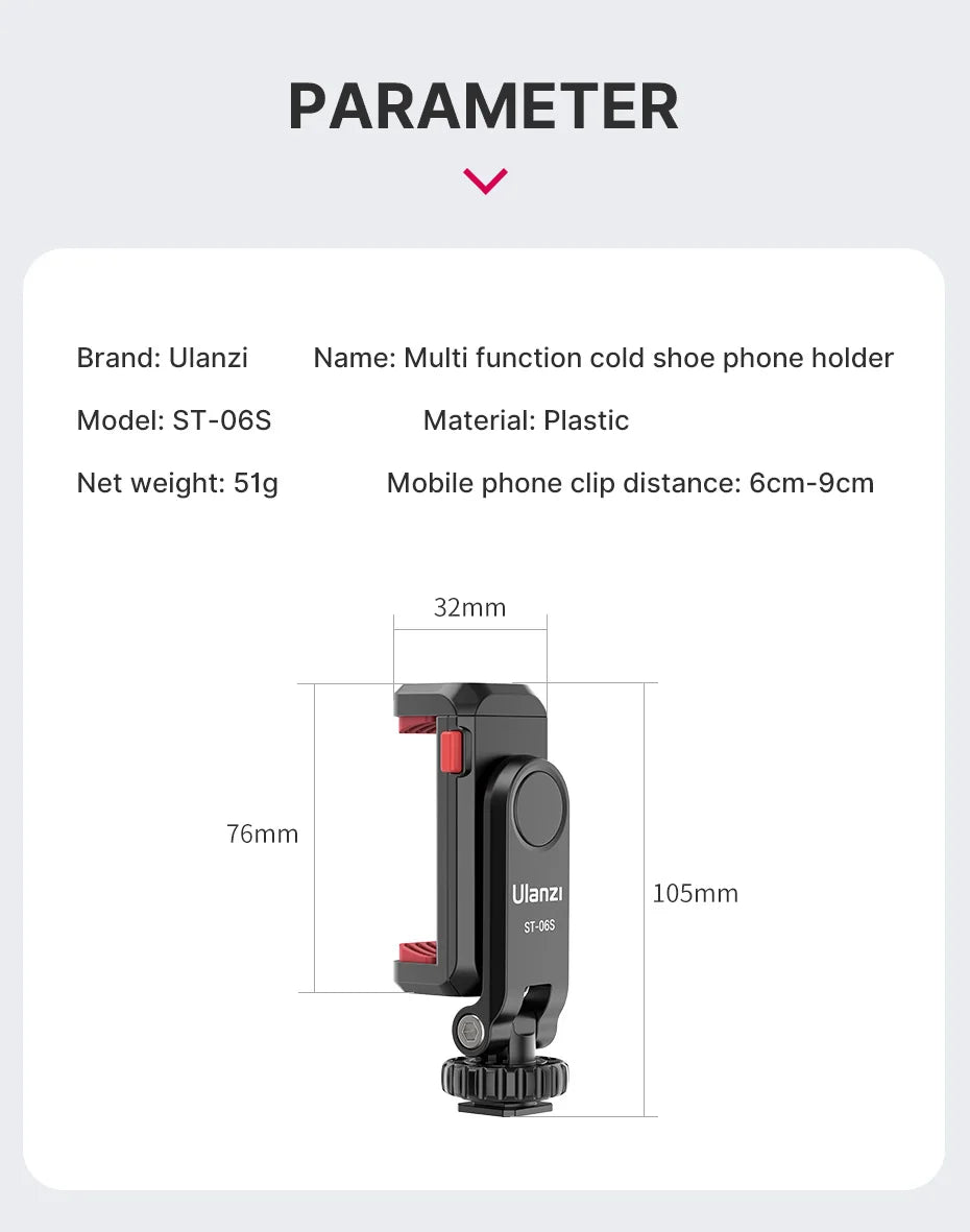 Ulanzi ST-06S 360°Rotatable Phone Holder Vertical Shoot PhoneMount Tripod Mount With Cold Shoe phone Clip Clamp Vlog Video