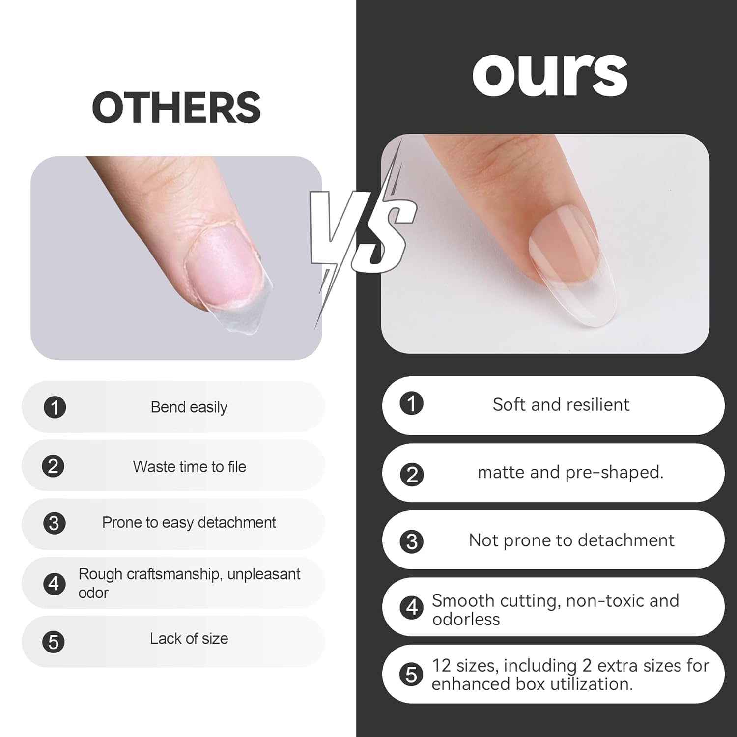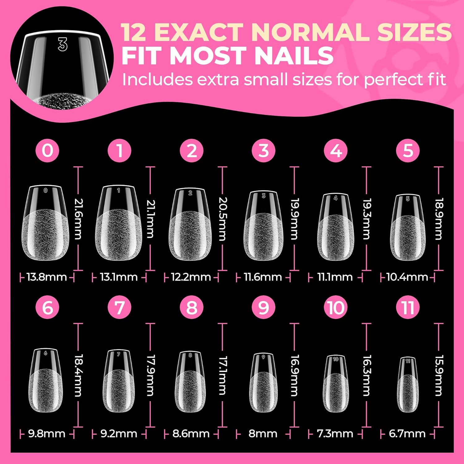 - ❤ 15 Size Options: Our fake toenails come in 15 sizes with extended length and wider width, featuring a pre-shaped square style. Additionally, 5 sizes are specifically designed for larger toenails, making them suitable for most foot shapes, especially wider toenails—even men can use them. Whether your nail beds are wide, regular, or narrow, our acrylic toenails will fit your needs perfectly.