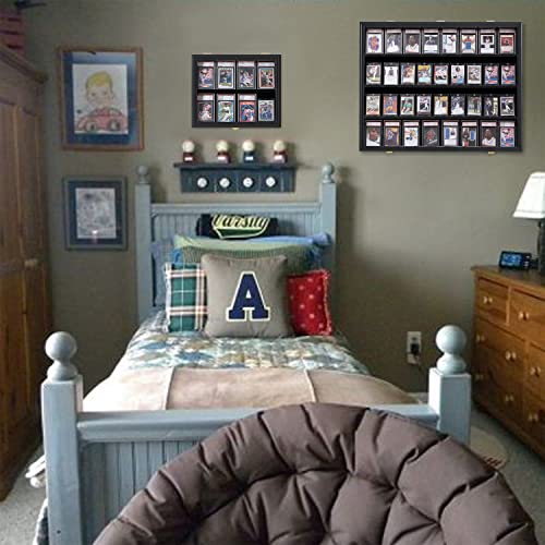 - BEST WAY TO SHOW OFF SPORT CARDS - Sport cards collection display case is made of wood with Anti-fade Matt Black finish, Shatter proof 92% transparency and 98% UV protection acrylic glass, velvet like felt lining along with gold plated anti-theft locks can well protect your cherished memorabilia or collectibles. The frame outer size is 24.25in X 30.5in X 2.1in, Compartment height is 5.4 inch, Interior depth is 1.1in. NOTE: Cards are not included. , (note: Cards are not included).